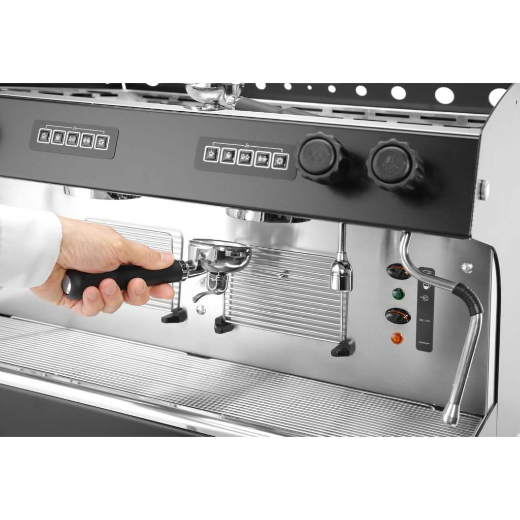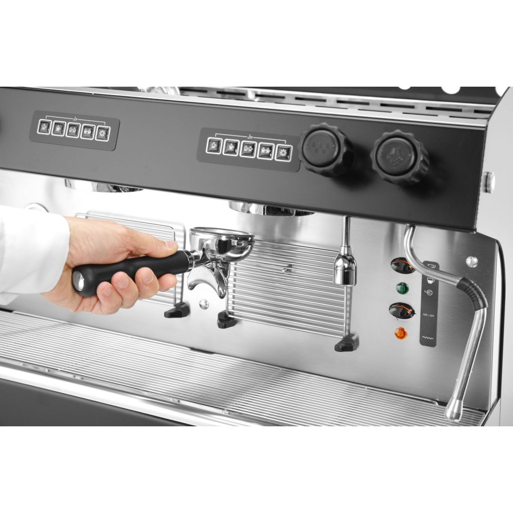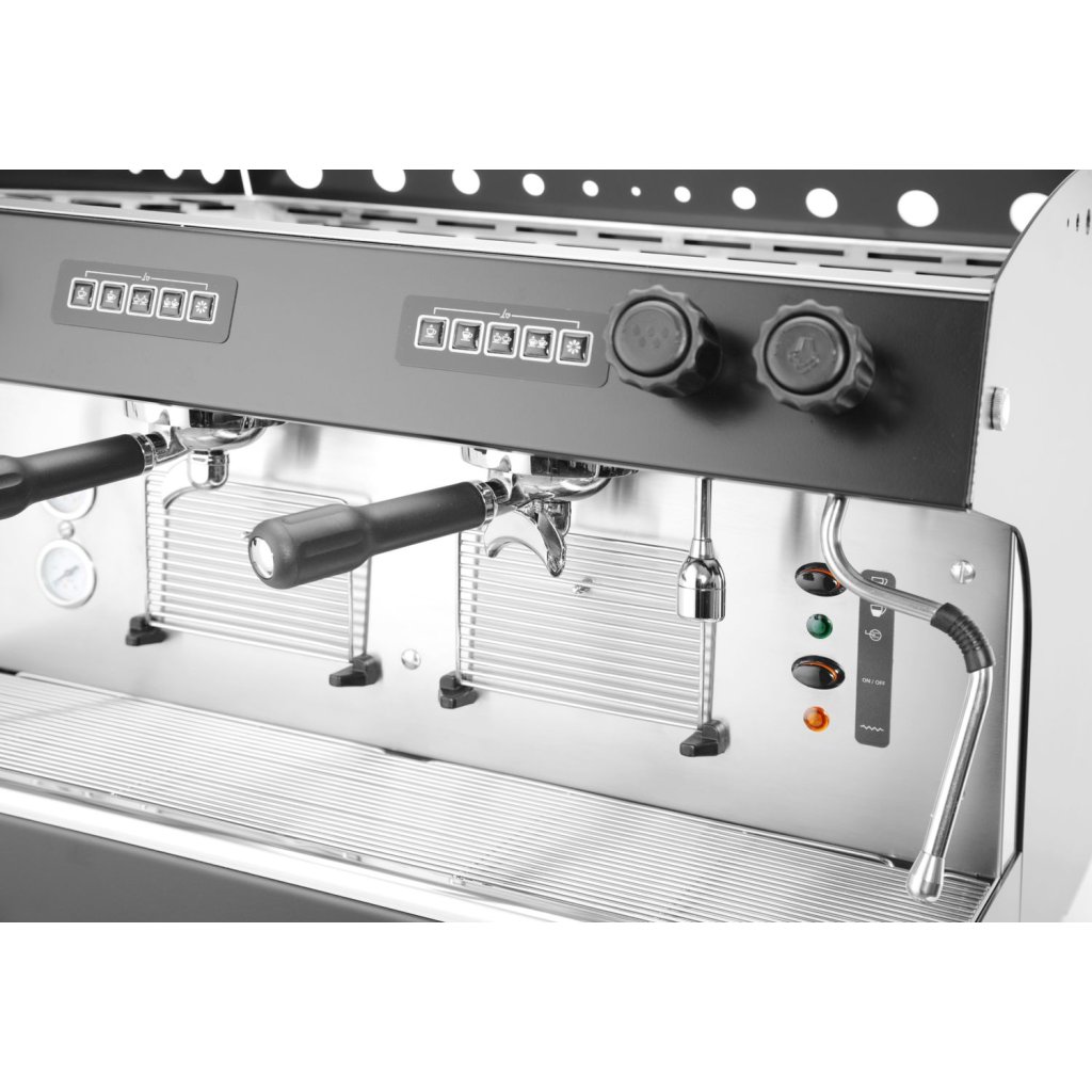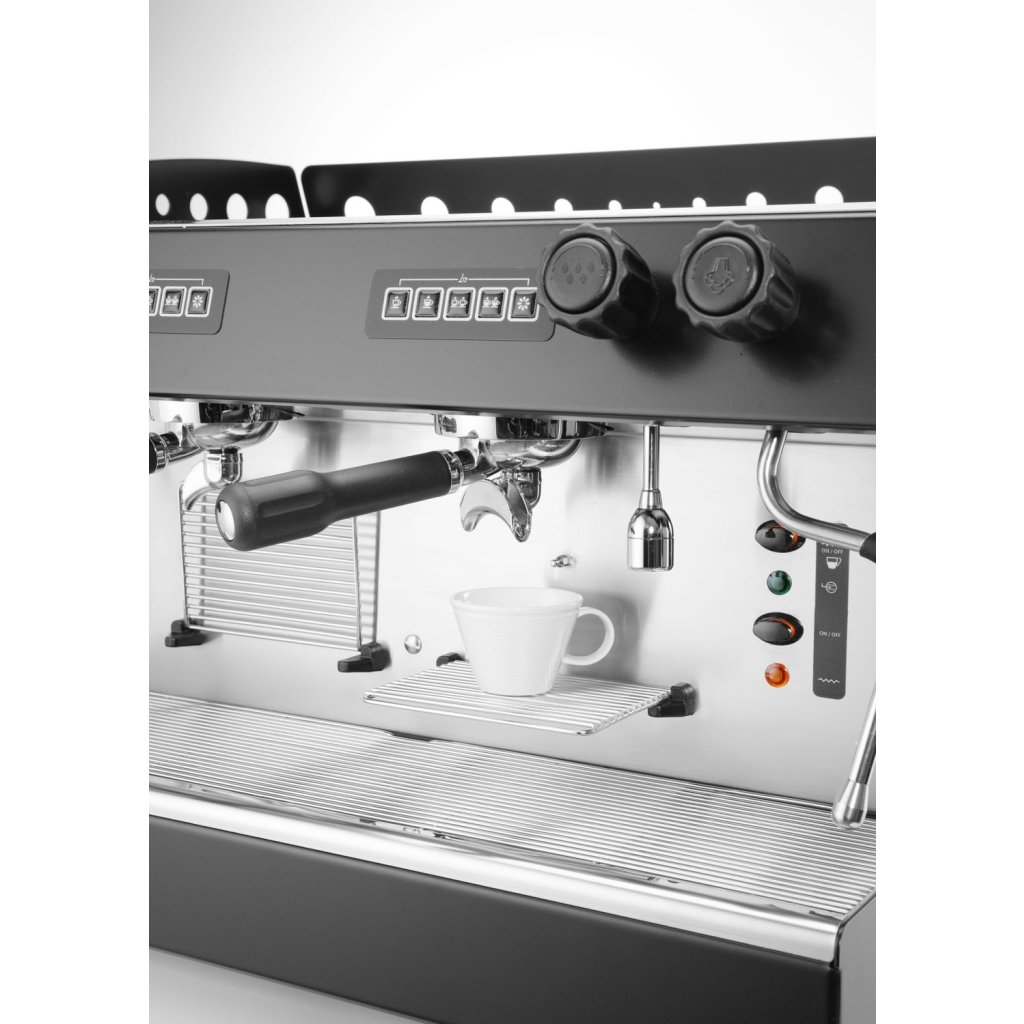 Výkonný a spoľahlivý pákový kávovar, ktorý bol navrhnutý špeciálne na prípravu dokonalej kávy Tento prístroj je vyrobený z vysoko kvalitných súčiastok a materiálov, ktoré sa vyznačujú dlhou životnosťou Má mechanizmus, ktorý umožňuje, aby každá káva bola delikátna a rovnomerne naparená Jednotlivé páky je možné ovládať nezávisle od seba a to pomocou intuitívnych, odolných proti opotrebovaniu a podsvietených ovládacích panelov Profesionálny pákový kávovar je vyrobený z nehrdzavejúcej ocele Automatické ovládanie Manuálne dávkovanie kávy Automatické dopĺňanie vody Automatické umývanie pák Maximálna výška šálky/pohára: 140 mm Objem bojlera: 11 l Počet pák: 2 Počet trysiek na horúcu vodu: 1 Počet trysiek na vodnú paru: 2 Hmotnosť bez obalu: 59 kgBuďte prvý, kto napíše príspevok k tejto položke.