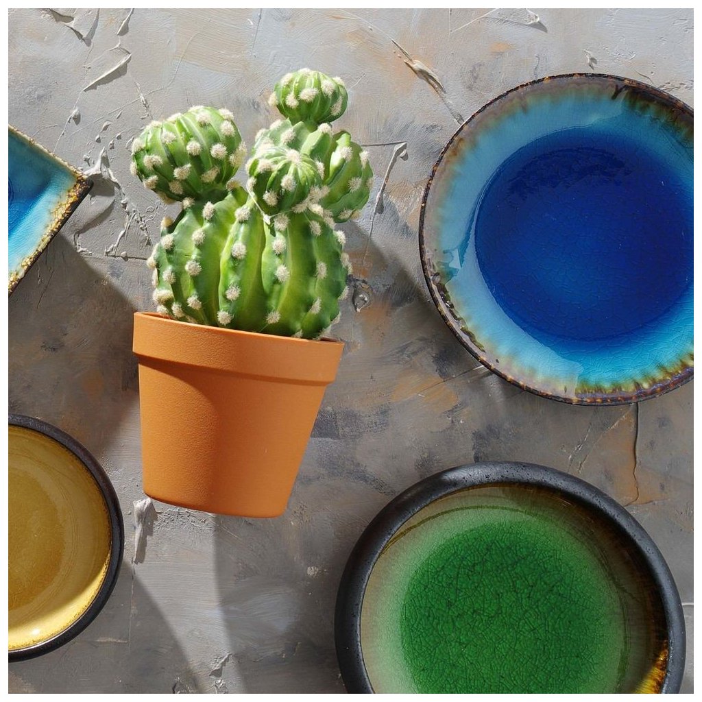 Dominuje im zelená farba berylu, modrá farba lazúru a slnečne oranžová farba topásu, majú nerovnomerný, čiastočne drsný povrch a ideálnu povrchovú úpravu pri dokonalom servise. Dizajn kolekcie Topaz pripomína japonský štýl. Vďaka ručnému opracovaniu a glazovaniu sú u jednotlivých výrobkov možné drobné odchýlky vo farbe a štruktúre, čo nám umožňuje oceniť ich jedinečný charakter.Buďte prvý, kto napíše príspevok k tejto položke.