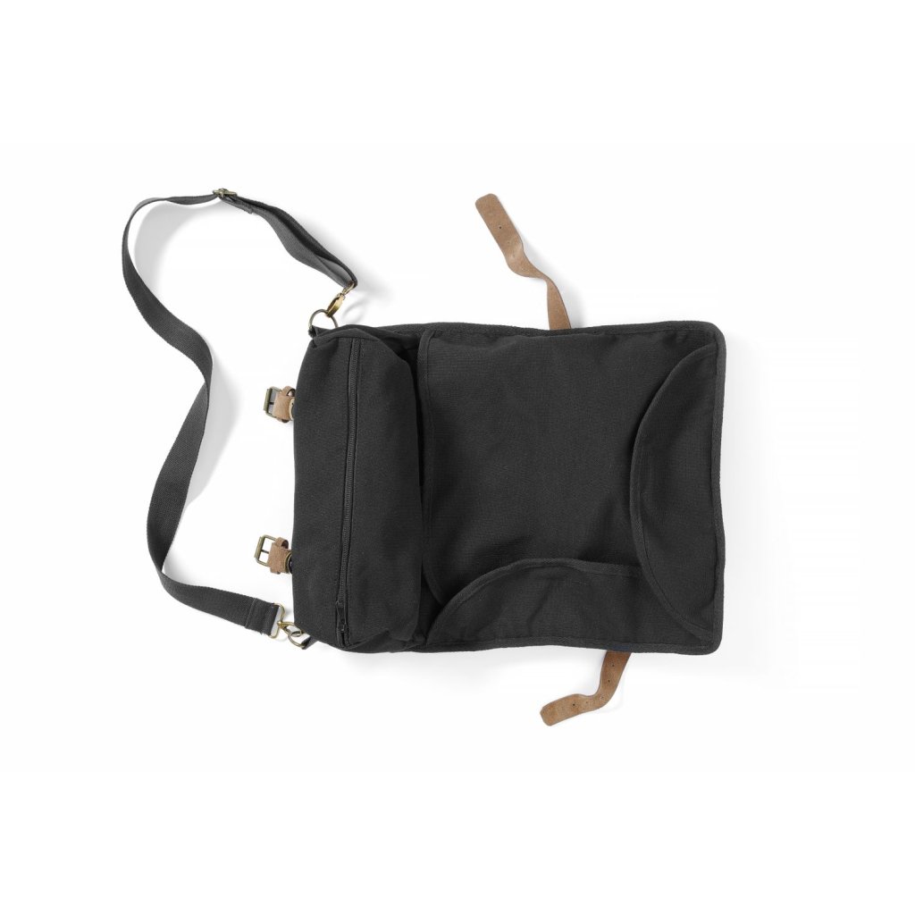 Vyrobené zo silnej bavlny s hladkou väzbou. Taška má okraj s prešitím pre spevnenie a elegantný povrch. Kovanie z nehrdzavejúcej ocele v starozlatej farbe. Remienky z hnedej prírodnej kože (semiš). Čierny bavlnený popruh cez rameno s nastaviteľnou dĺžkou a možnosťou odopnutia. Bezpečné zapínanie pomocou praciek a kožených remienkov. Rozloženie: - 8 vreciek (napr. na barmanské lyžice, pinzety), - 8 pružných otvorených priehradiek (napr. na žigulíky), - 3 chlopne zaistené suchým zipsom, - priehradka na zips na šejker/bostonský šejker s rozmermi 37x15 cm. Rozmery vnútornej časti (s uzavretými chlopňami): 37x33,5 cm. Barmanské nástroje nie sú súčasťou dodávky.Buďte prvý, kto napíše príspevok k tejto položke.