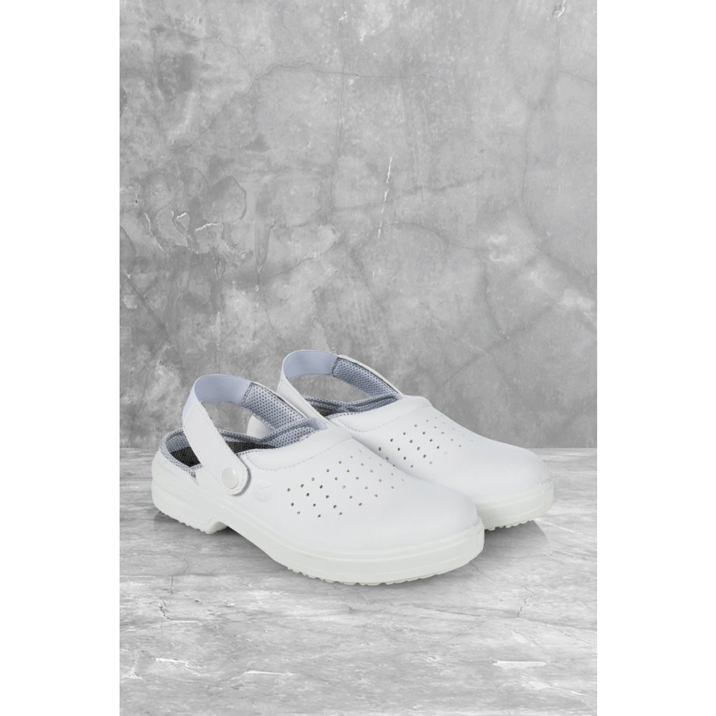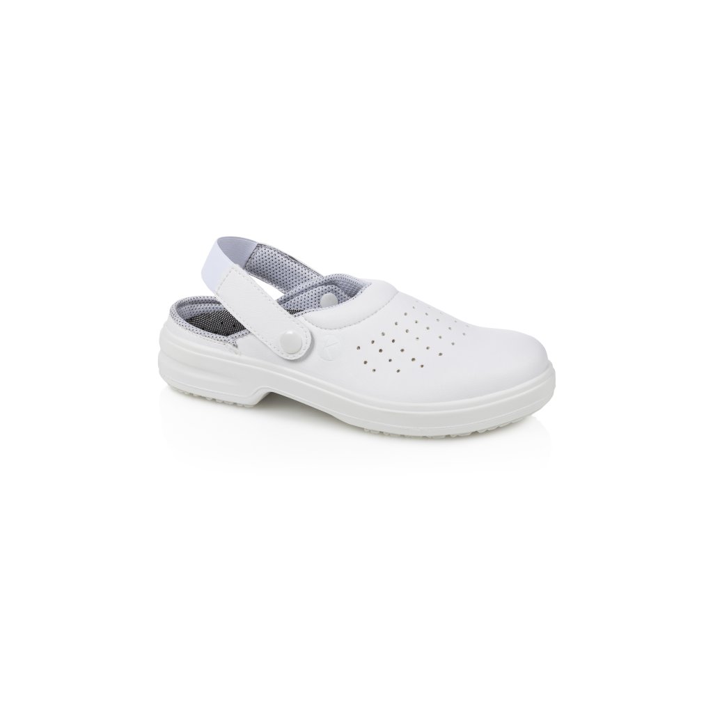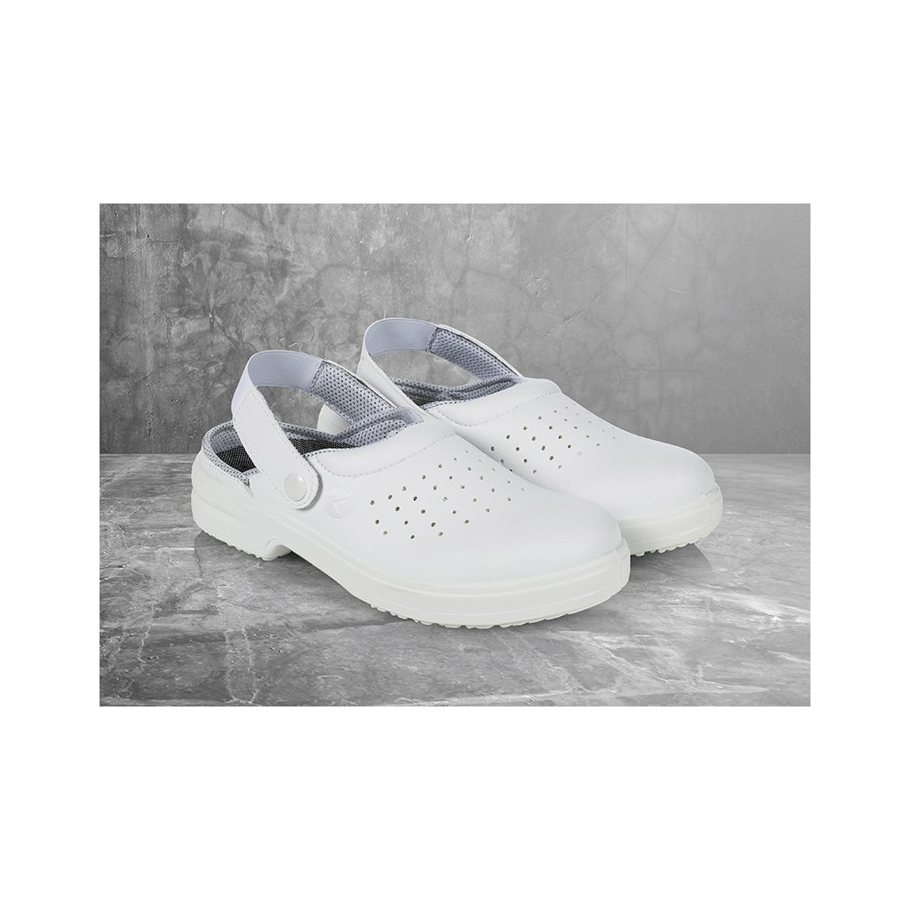 | 1 pár / balenie | 1 pár / balenie | vrchný materiál: imitácia kože | vnútorný materiál: textil | stielka: vrstva syntetickej peny potiahnutá textilom | vonkajšia podrážka: syntetický materiál | | pre ženy a mužov | s oceľovou špičkou | odolnosť proti nárazu: až 200 joulov | otvorená päta, odnímateľný gombík | pohodlné nosenie | priedušné | trvale antibakteriálna PE stielka | PE stielka, antistatická PU podrážka | protišmyková, odolná proti oleju a palivám | vysoká absorpcia energie v oblasti päty | možno prať do 40 °C | EN ISO 20347:2011, SB-A-E-FO-SRCDodatočné parametre