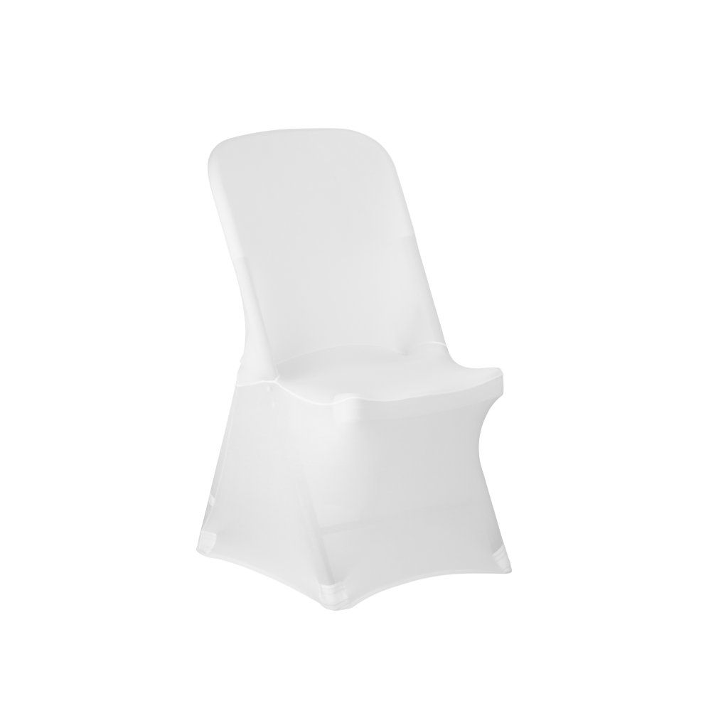 Biely poťah na cateringovú stoličku vyrobený zo spandexu. Vhodný pre modely 500000 a 500001.