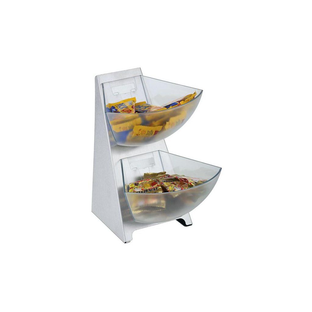 Praktický štvorposchodový stojan na tovar v malých baleniach. Vhodné pre snack bary, kaviarne, jedálne, bufety. Jednoducho tak môžete ponúkať cukry, smotany, maslo, džem, kečup a iné. Súčasťou je: nerezový, matný podstavec, štyri plastové nádoby, každá cca 1 l. Vhodné do umývačky riadu.Dodatočné parametre