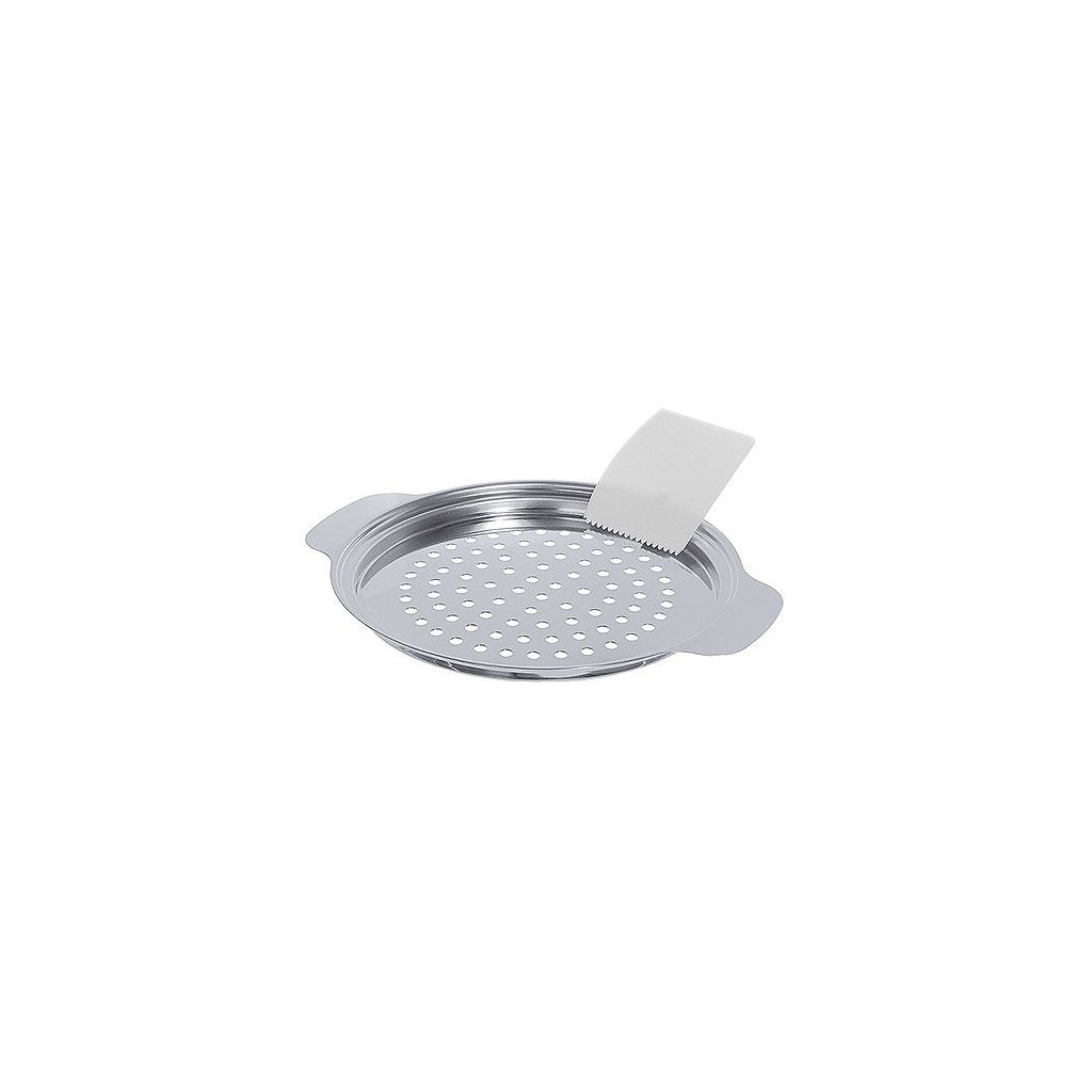 Perforovaný tanier na tekuté cesto z leštenej nehrdzavejúcej ocele. Perforácia 5 mm. Vhodný na hrnce s priemerom 240-280 mm.Dodatočné parametre