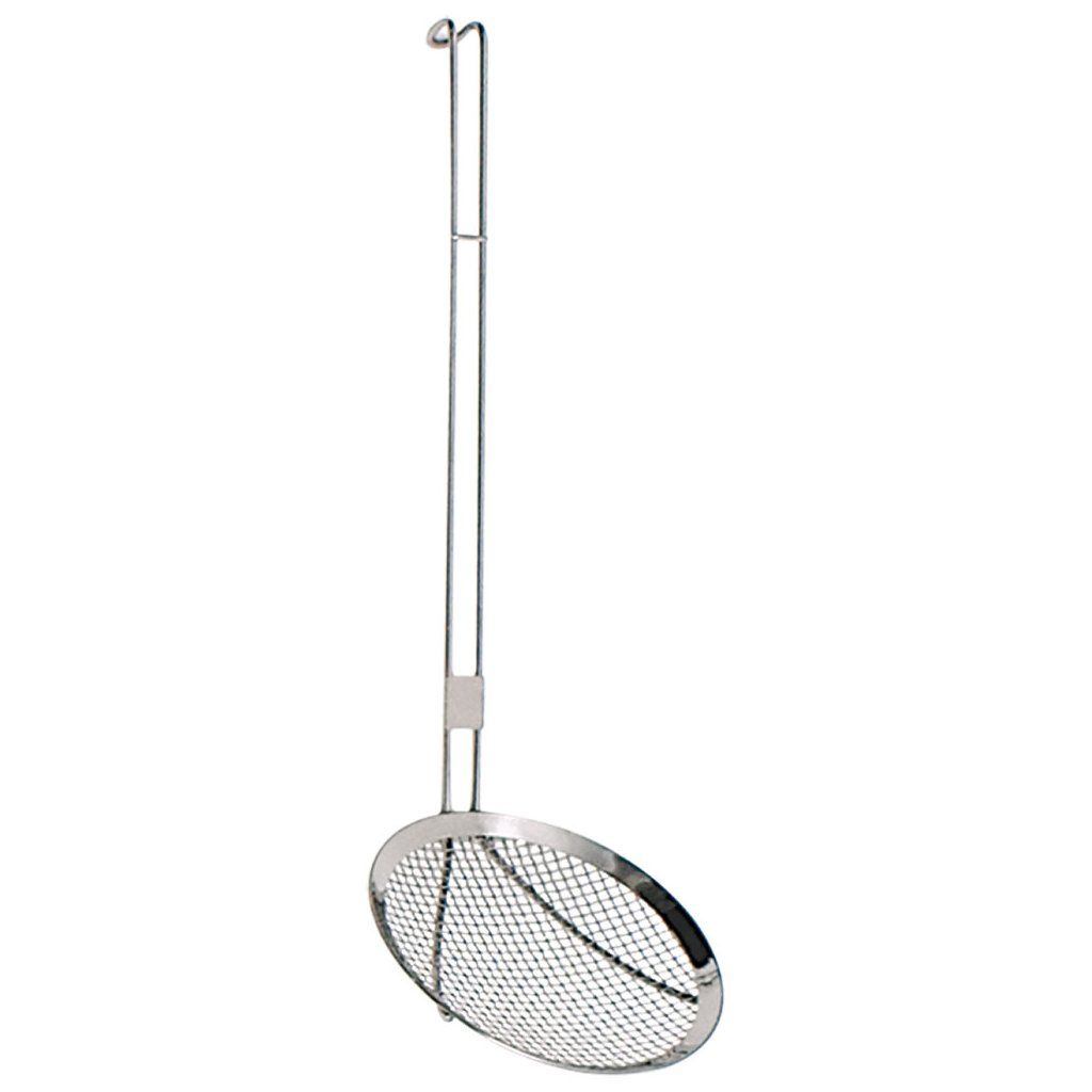 Sitko síro vyrobené z nehrdzavejúcej ocele. Zahnutý koniec rukoväte umožňuje zavesenie príboru na vešiaku alebo na okraji odkvapu.Dodatočné parametre