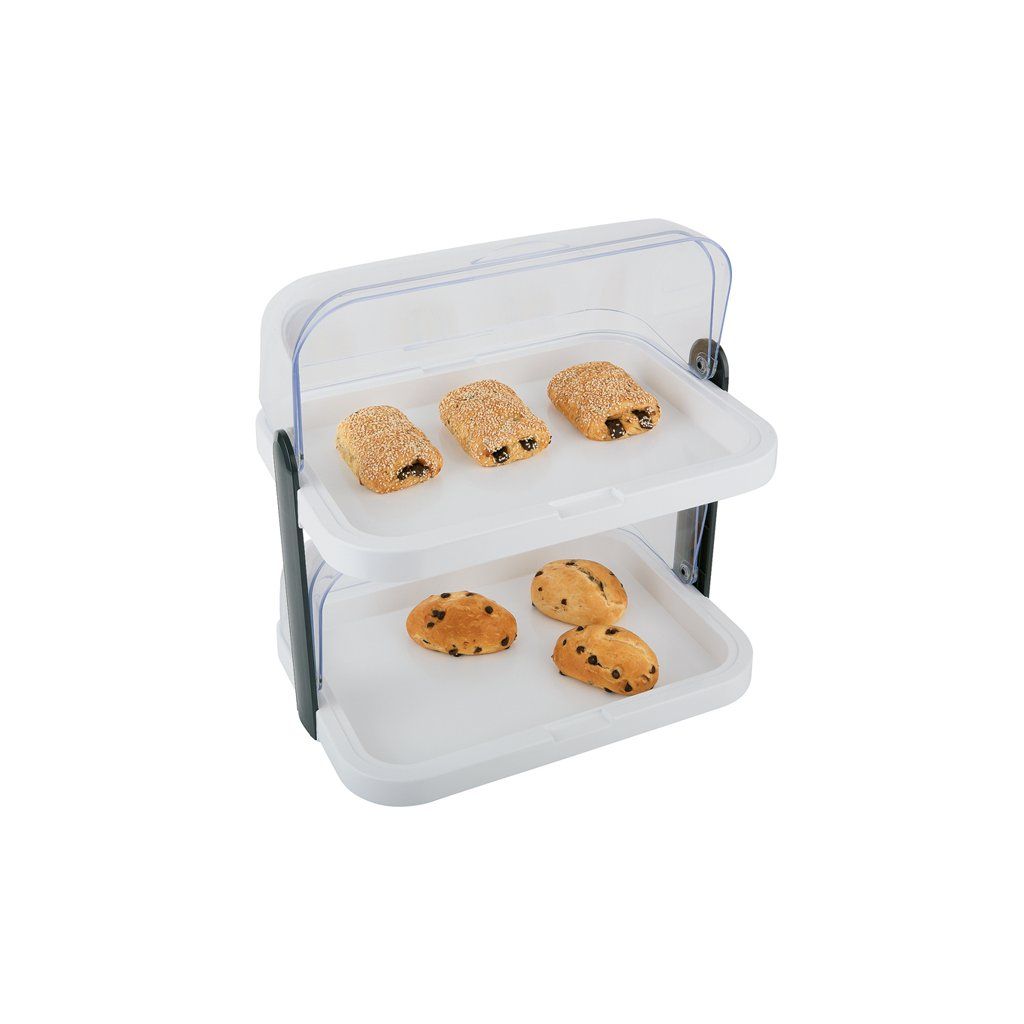 Dvojposchodová chladiaca vitrína s obojstranným otváraním. Súčasťou sú 2 tácy z nehrdzavejúcej ocele 390x280 mm, 2 poklopy roll-top z priehľadného plastu, 4 chladiace vložky. Vhodné na chlebíčky. Možno umývať v umývačke riadu. V ozdobnom obale.