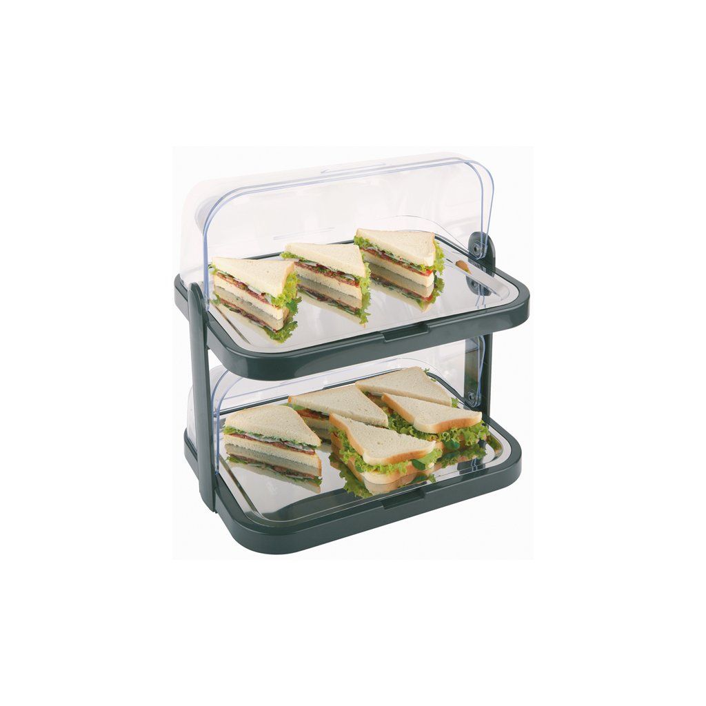 Dvojposchodová chladiaca vitrína s obojstranným otváraním. Súčasťou sú 2 tácy z nehrdzavejúcej ocele 390x280 mm, 2 poklopy roll-top z priehľadného plastu, 4 chladiace vložky. Vhodné na chlebíčky. Možno umývať v umývačke riadu. V ozdobnom obale.