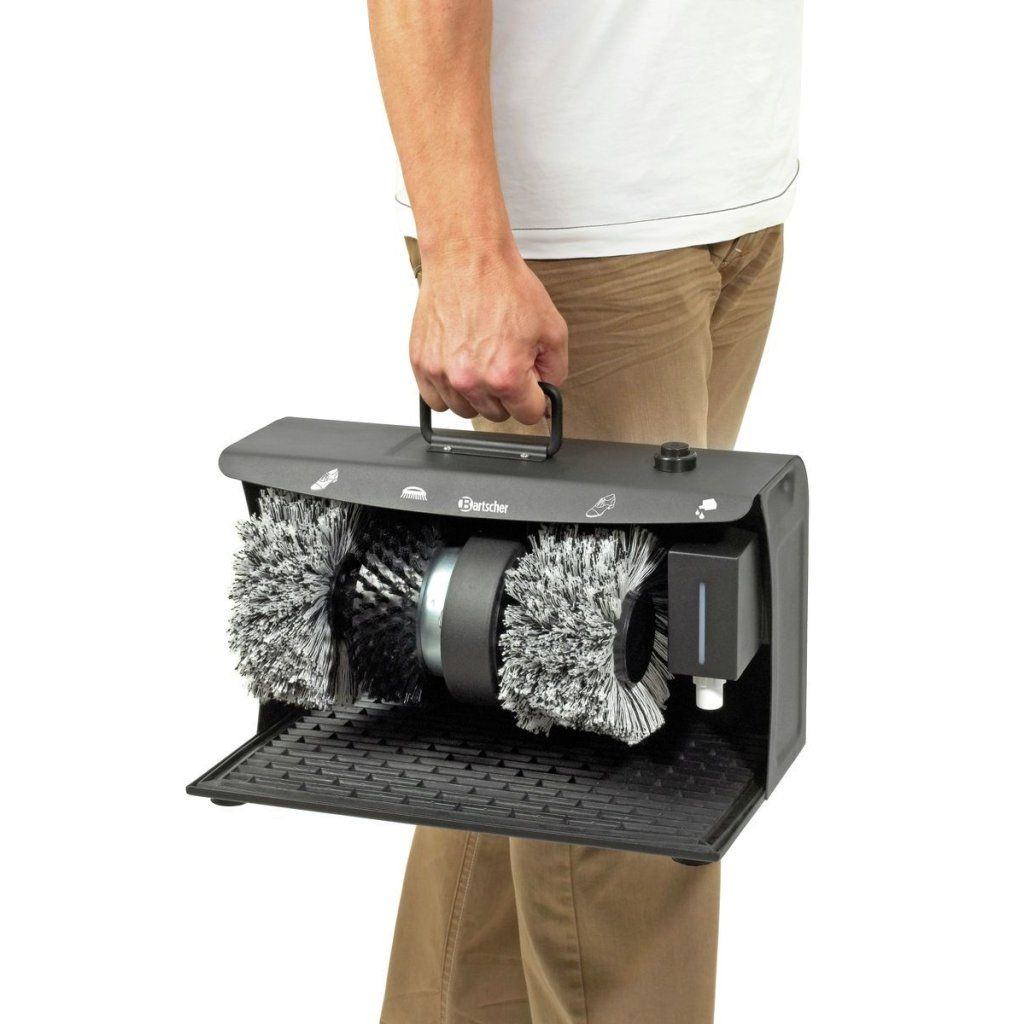 Stroj na čistenie obuvi - Leštenie topánok bez námahy - ovládanie tlačidlom nôh - Práškovaná oceľ, matná čierna s 3 tichými rotačnými kefami: - 2 leštiace kefy z terylenu (polyesteru), pre svetlú a tmavú obuv - 1 čistiaca kefa na silné znečistenie - dávkovač tekutého krému na topánky, 100 ml s guľovým ventilom, - bez rezervy leštidla - Nožné ovládanie pomocou tlačidla (ON/OFF) - 1 rukoväť na hornej strane jednotky, - 2 bočné úchyty (priehlbiny) - Podložka na zber nečistôt pre jednoduché čistenie stroja - bezúdržbový motor - príkon: 120 W / 230 V 50 Hz - rozmery: Š 400 x D 240 x V 260 mm - s nálevkou pre jednoduché plnenie dávkovača krému na topánky - hmotnosť: 6,4 kgDodatočné parametre