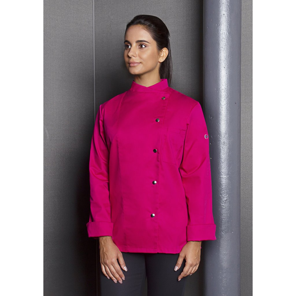 | keprová väzba, 65 % polyester / 35 % bavlna, 215 g/m² | vysoko kvalitná, predzrážaná, stálofarebná, ľahko sa udržuje | | kuchárska bunda pre dámy v priliehavom strihu | vypasovanie v páse, bočné švy vpredu a vzadu | manžety rukávov so štrbinou | našité šikmé náprsné vrecko vľavo (min. 7 x 13 cm) s vreckom na pero (2 x 13 cm) | sako s 5 gombíkmi a cvokmi | vhodná pre priemyselné pranie | zodpovedajúci výrobok: kuchárska bunda Lars - JM 14 (číslo výrobku výrobcu)Dodatočné parametre