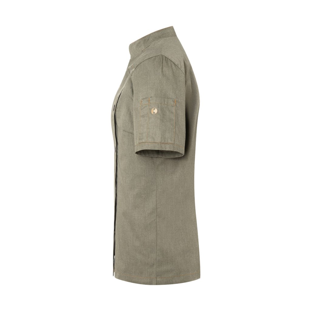 | keprová väzba, 65 % polyester / 35 % bavlna, 195 g/m² (vintage červená: 175 g/m²) | vysoko kvalitná, vyzrážaná, stálofarebná, ľahko sa udržuje | | trendy dámska kuchárska bunda v džínsovom štýle so štíhlym strihom a krátkymi rukávmi | kontrastné farebné švy pre originálny džínsový vzhľad | asymetricky zapínaná, jednoradová bunda s 5 gombíkmi a nitom pre rýchle zapínanie a rozopínanie | našité vrecko na rukáve (8,5 x 12 cm) na ľavej strane s praktickou priehradkou na pero (2 x 12 cm) | vhodná pre priemyselné pranie | zodpovedajúci výrobok: Kuchárska bunda s krátkymi rukávmi - JM 32 (číslo výrobku výrobcu)Dodatočné parametre