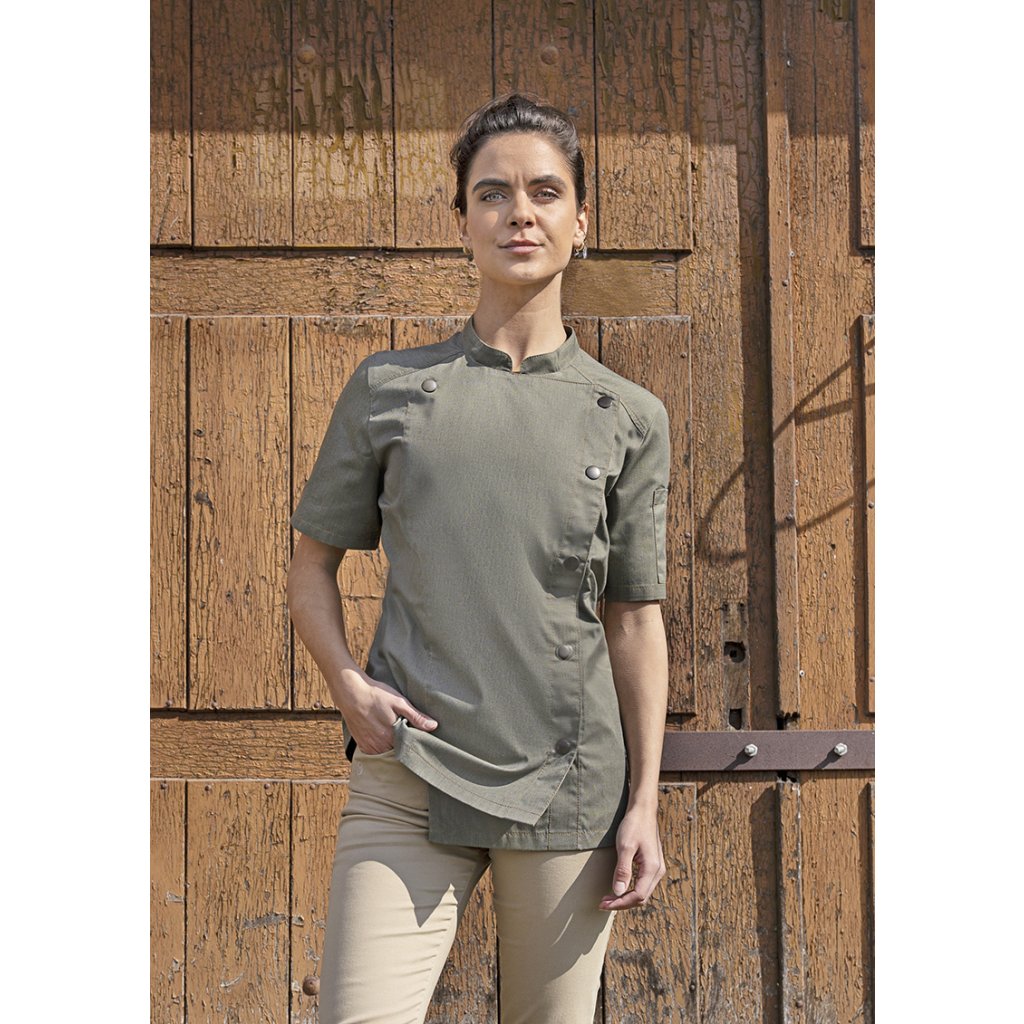 Dámská kuchařská bunda s krátkými rukávy v džínovém stylu