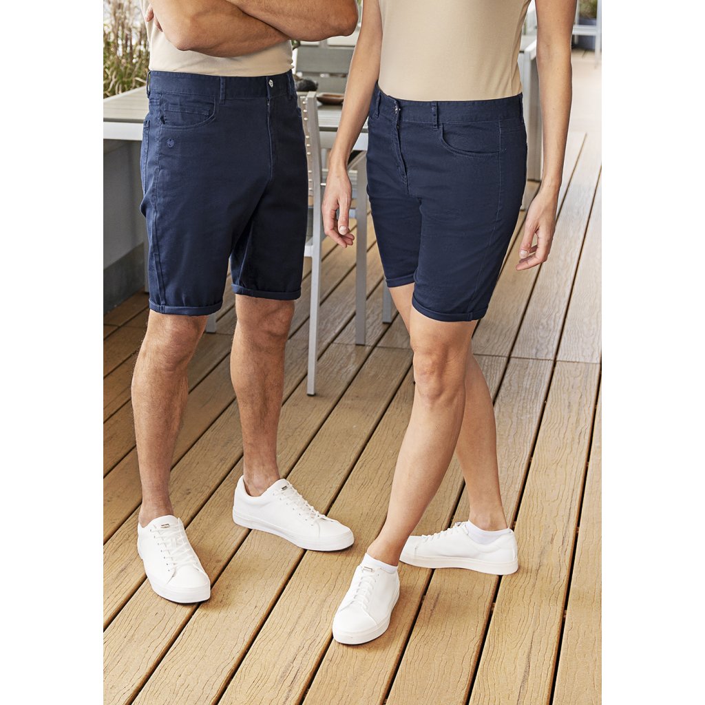 | keprová tkanina, 98 % bavlna / 2 % elastan, 230 g/m² | jednoduchá údržba, elastická | ležérne dámske kraťasy v klasickom štýle s 5 vreckami | vyrobené z ľahkej a priedušnej strečovej bavlny pre skvelú voľnosť pohybu | univerzálne pre teplé dni, napr. v plážových baroch, na výletných lodiach, v golfových kluboch, kaviarňach a mnohých ďalších miestach | vyvinuté pre vysoké nároky na starostlivosť (biele: možno prať na 95 °C / farebné: možno prať na 60 °C) | perfektný spoločník na každý deň, aj mimo práce | priliehavý strih s úzkym lemom | 2 predné vrecká, z toho 1 skryté vrecko na mince | 2 zadné vrecká vzadu | vrátane pútka na opasok | zodpovedajúci výrobok: Pánske kraťasy s 5 vreckami – HM 15 (číslo výrobku výrobcu)Dodatočné parametre