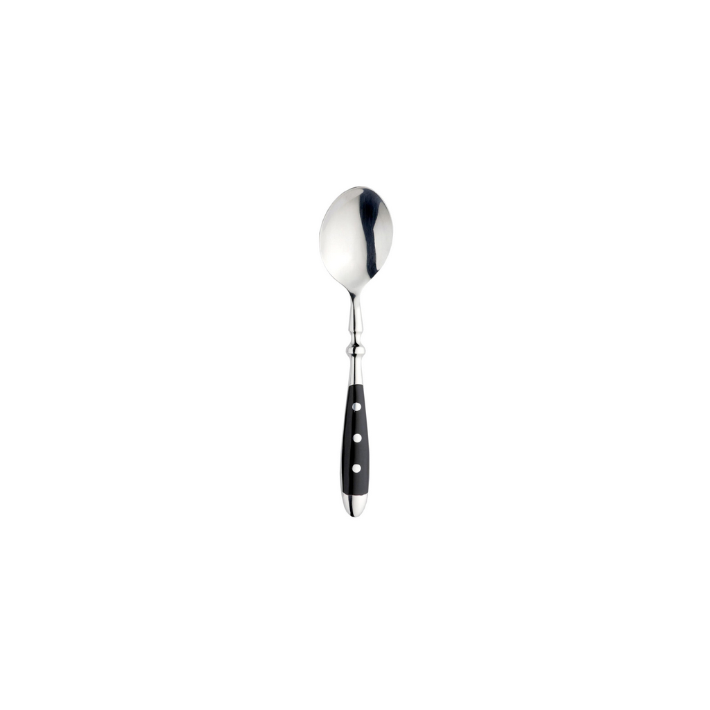 Lyžička na kávu z kolekcie Doria odráža rustikálny štýl kombinovaný s modernými prvkami. Rukoväť zdobí prvotriedny plast, ktorý znásobuje jej eleganciu, a navyše perfektne padne do ruky. Na výrobu lyžičky sa používa aj nehrdzavejúca oceľ 18/0 – tá garantuje vysokú odolnosť proti korózii a dlhú životnosť aj pri každodennom používaní.Lyžička na kávu 15,3 cm