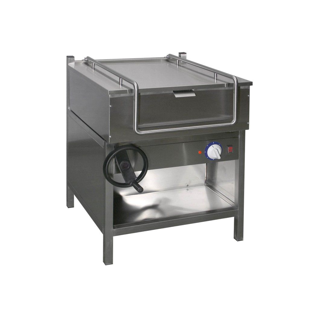Elektrická panvica rady PE sa používa na tepelné spracovanie potravinárskych výrobkov, najmä na vyprážanie na oleji. Vlastnosti zariadenia: stabilná nosná konštrukcia, špeciálny modul s kľukou umožňuje plynulé a rovnomerné naklápanie za účelom vypustenia použitého oleja, termostat umožňuje udržiavať teplotu v rozmedzí 50-275 ° C, taktiež má ochranu proti nekontrolovanému nárastu, blikajúca signálna kontrolka na prednom paneli znamená, že je zariadenie zapnuté a varuje používateľa pred náhodným dotykom a popálením, napájanie: 3 NPE 400V 50Hz panvice sú vyrobené z kyselinovzdornej nehrdzavejúcej ocele 304 Typ AISI.Dodatočné parametre