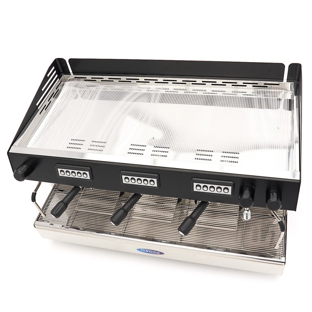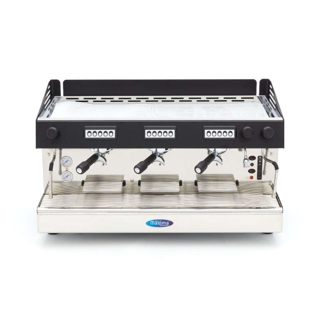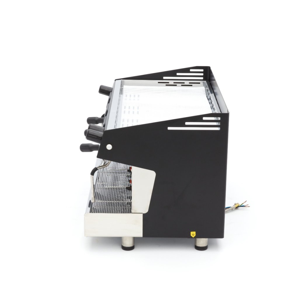 + Má samočistiaci program + Automatický systém dopĺňania vody + Štyri dávky kávy na skupinu pre rôzne prípravy kávy - Veľmi ťažký kávovarTento kávovar na espresso je prínosom pre každé stravovacie zariadenie. Nielenže má množstvo funkcií, ale je tiež veľmi spoľahlivý. Kryt je vyrobený z kovu s čiernou povrchovou úpravou a dodáva mu luxusný a elegantný vzhľad. Má bojler s objemom 18 litrov, čo znamená, že je schopný uvariť až 540 šálok za hodinu. Je tiež vybavený trojitou skupinovou hlavou s komorou pre priame predsparenie. Pre každú skupinu sú k dispozícii štyri možnosti dávkovania kávy: espresso, veľká káva, dve espressa a dve veľké kávy, takže si môžete vybrať tú správnu prípravu kávy pre svojho zákazníka. Odkvapkávací filter je vyrobený z chrómu a priestranná odkvapkávacia miska je vyrobená z nehrdzavejúcej ocele.