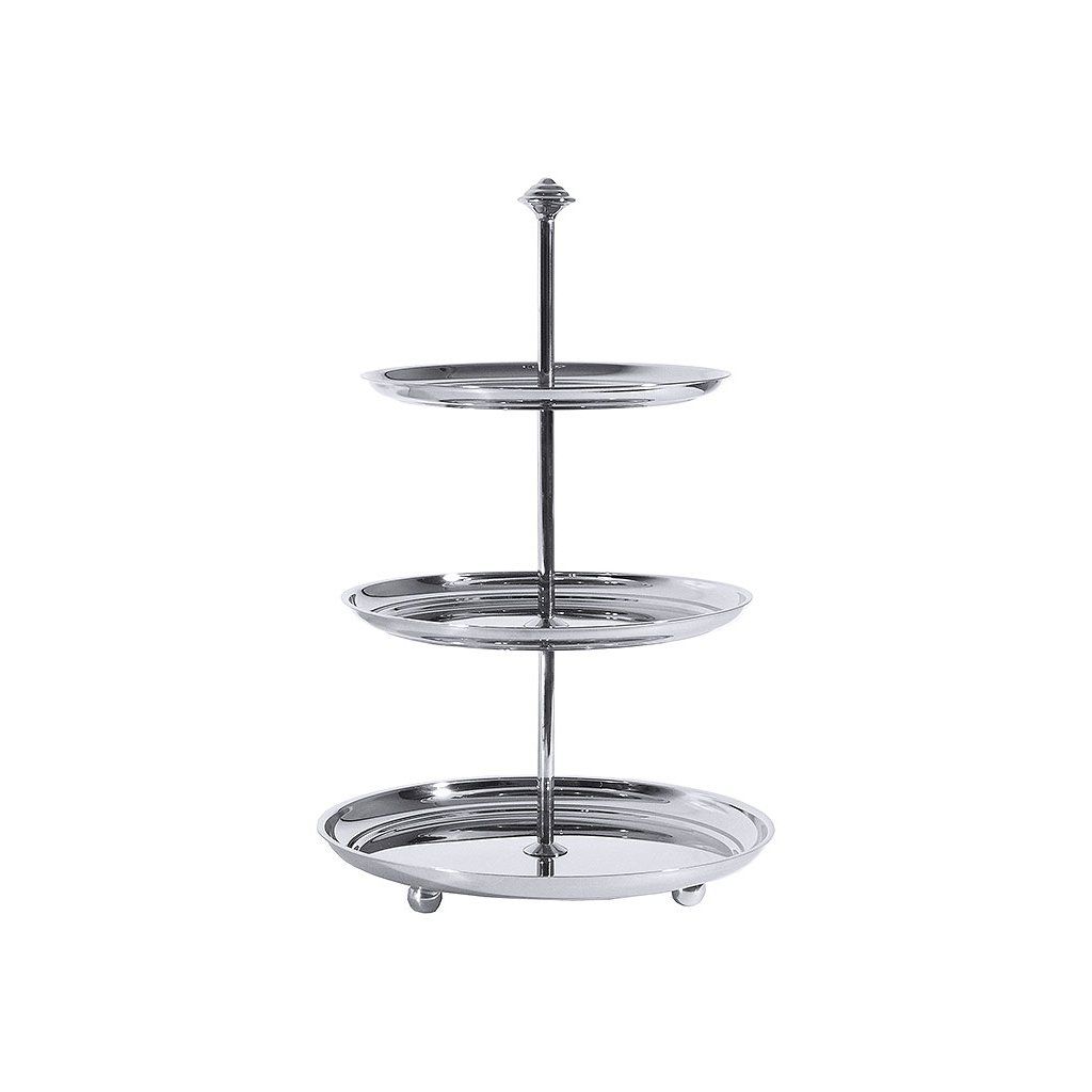 Trojposchodový etažér na zákusky je vyrobený z leštenej nehrdzavejúcej ocele. Vlastná montáž.Dodatočné parametre