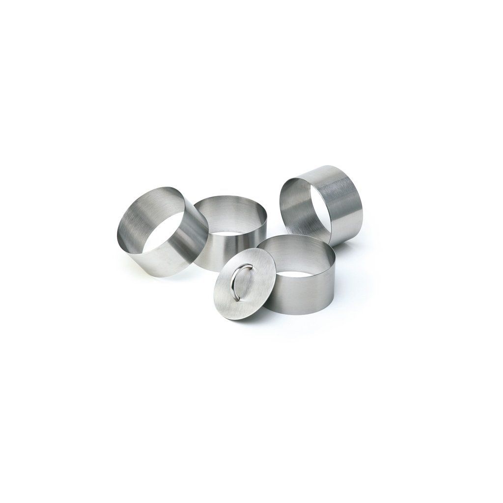 Sada 4 kusov formičiek vyrobených zo saténovej nehrdzavejúcej ocele. Viečko na utlačenie súčasti. Vhodné do umývačky riadu.Dodatočné parametre
