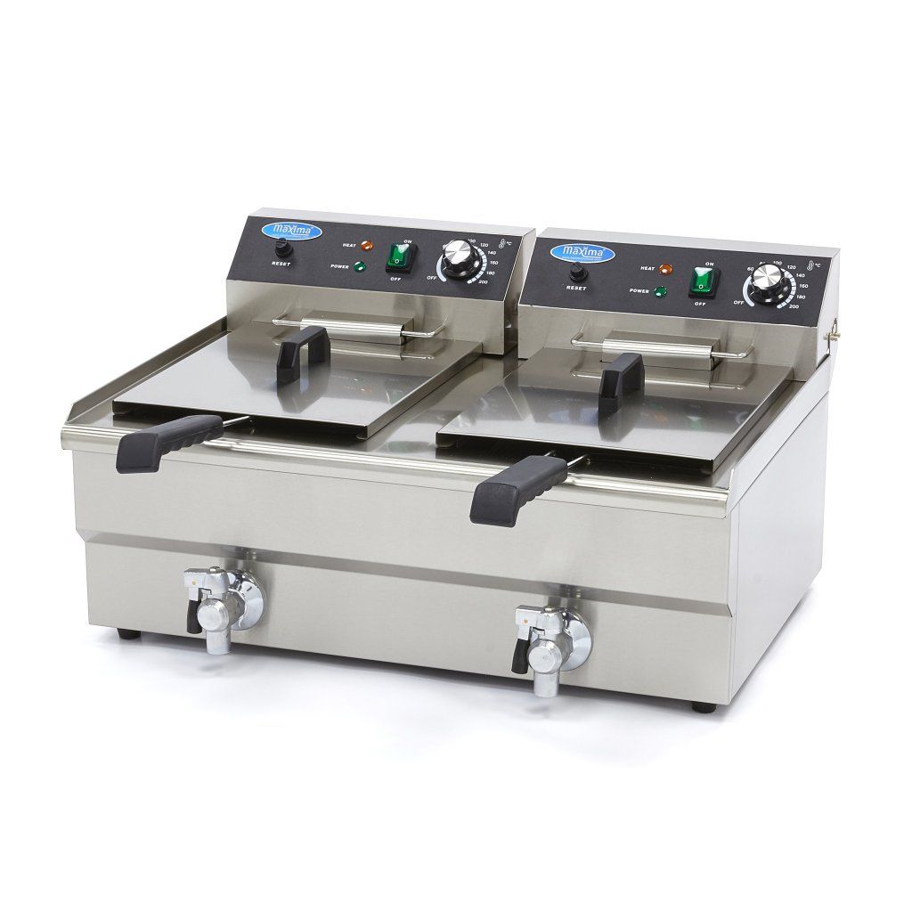 Fritéza 2 x 16 l s vypouštěcím kohoutem - dvojitý koš | Maxima, 09365011