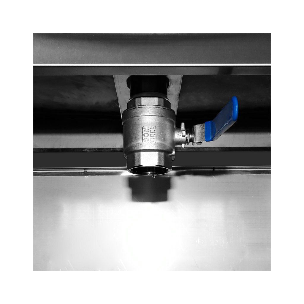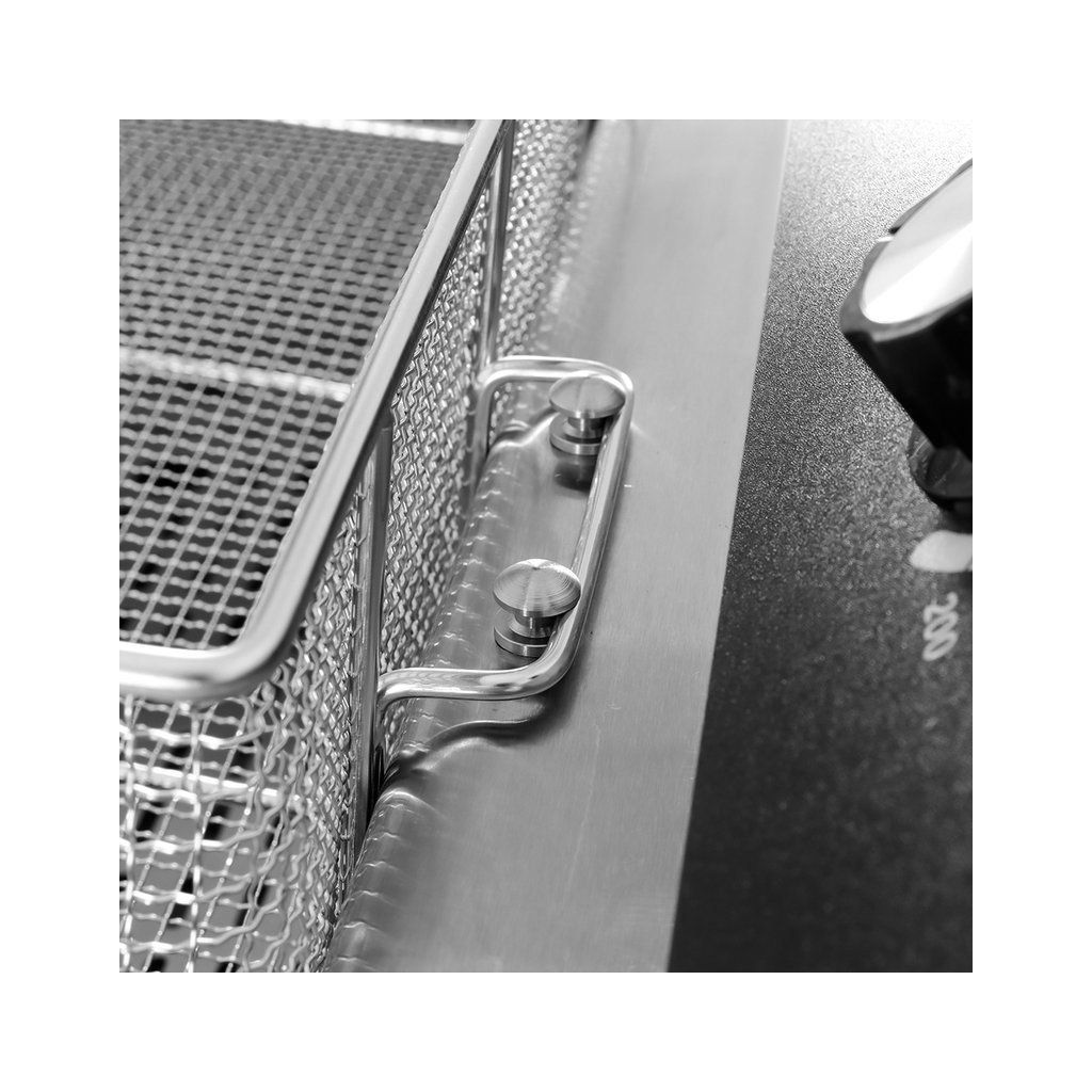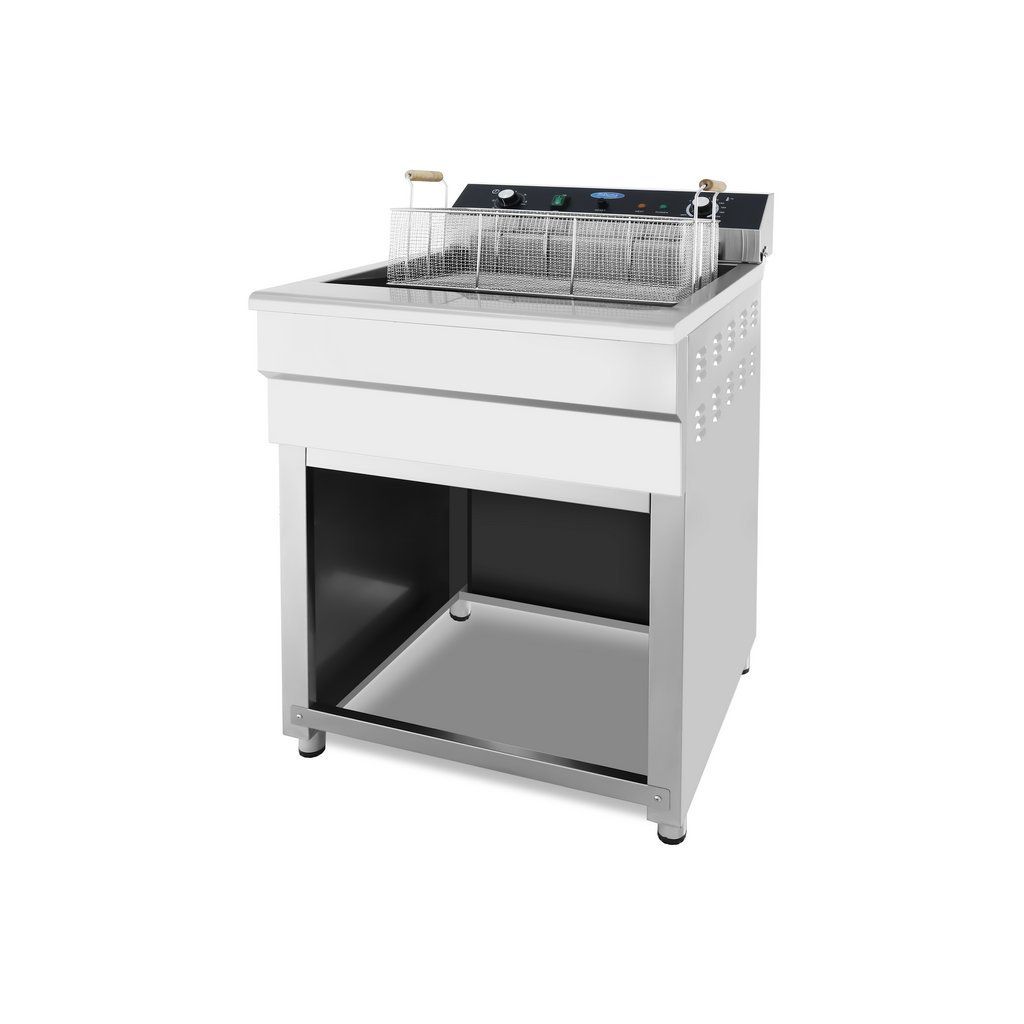 Táto fritéza je dodávaná s veľmi praktickým nerezovým vozíkom. Vďaka nemu máte ideálnu pracovnú výšku a ľahký prístup ku košu. Pod fritézou je veľký priestor pre vstup vypúšťacieho kohútika, ktorý je pripevnený k základni, takže môžete v prípade potreby ľahko vymeniť olej.