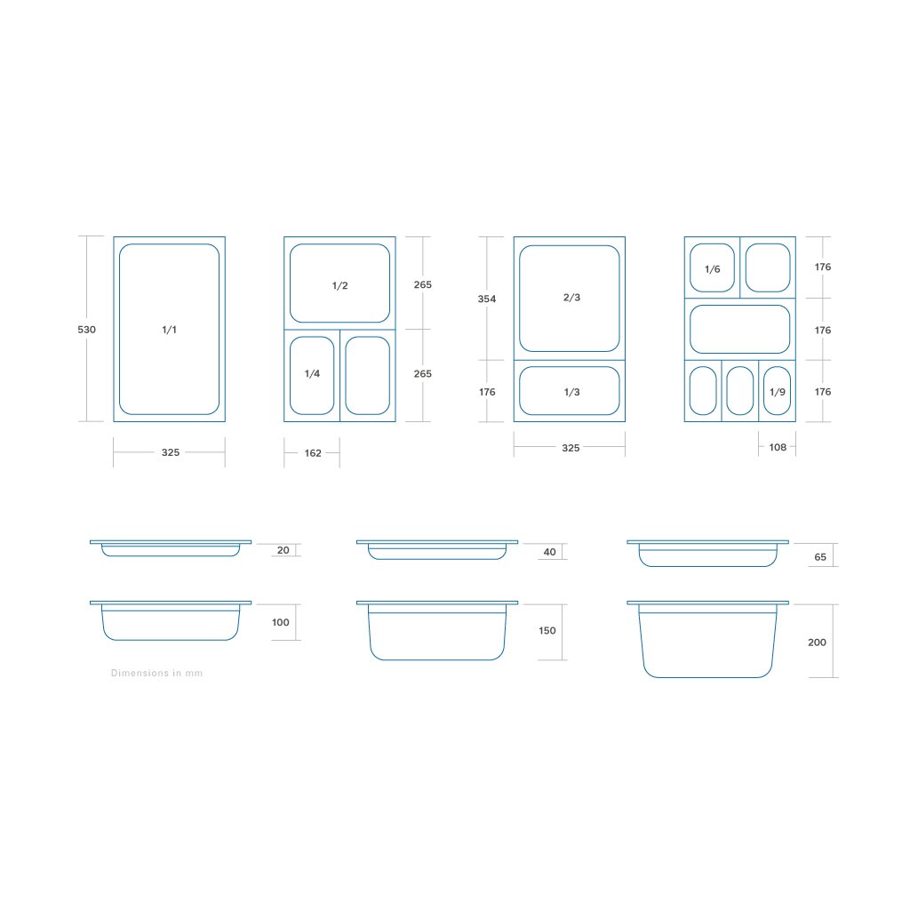Táto nádoba GN má ohnuté okraje a zaoblené rohy pre väčšiu pevnosť, takže sa ľahko a bezpečne používa. Používanie nádob GN rovnakej veľkosti zefektívňuje prácu v kuchyni. Pretože sú nádoby GN stohovateľné, sú ideálne na skladovanie a zaberajú málo miesta napríklad v mrazničkách a chladničkách. Okrem toho nádoby GN spĺňajú európske požiadavky na bezpečnosť potravín