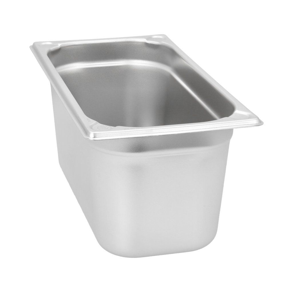 • Vyrobené z nehrdzavejúcej ocele so zosilnenými rohmi.• Nádoba je vhodná do umývačky riadu a stohovateľná.• Gastronádoby nájdu skvelé využitie v konvektomatoch, mraziacich boxoch, chladničkách a gastronomických ohrievačoch.• V rohu je vyznačená veľkosť GNDodatočné parametre