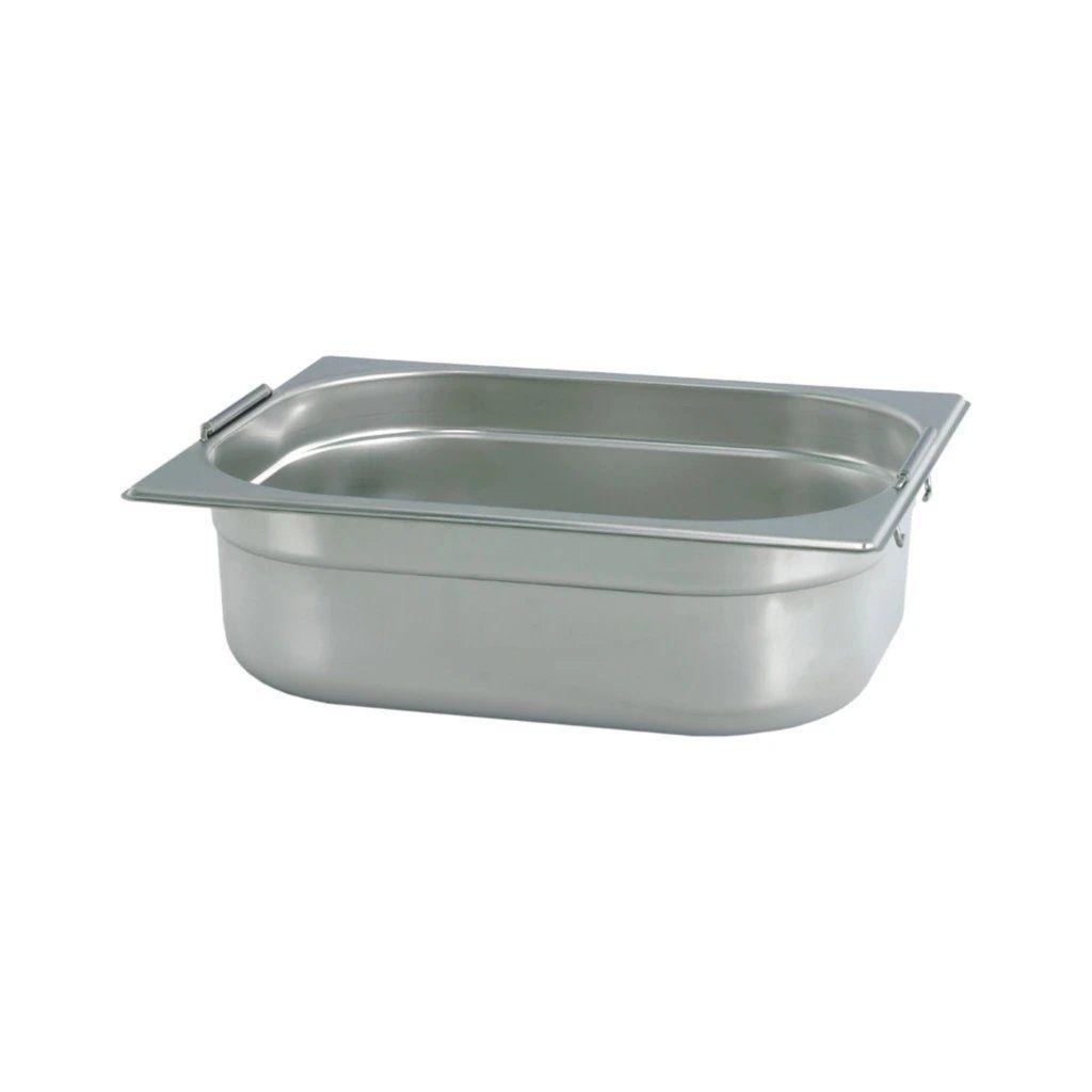 Plná gastronádoba GN 1/2 z rady Standard sa perfektne hodí na varenie, ohrev alebo výdaj jedla a jej úchyty po stranách uľahčujú manipuláciu. Vyrába sa z nehrdzavejúcej ocele 18/10 (18 % niklu, 10 % chrómu), ktorá garantuje lesk, vysokú odolnosť aj dlhú životnosť a dovoľuje umyť gastronádobu v umývačke riadu.Gastronádoba Standard s úchytmi GN 1/2 200 mm