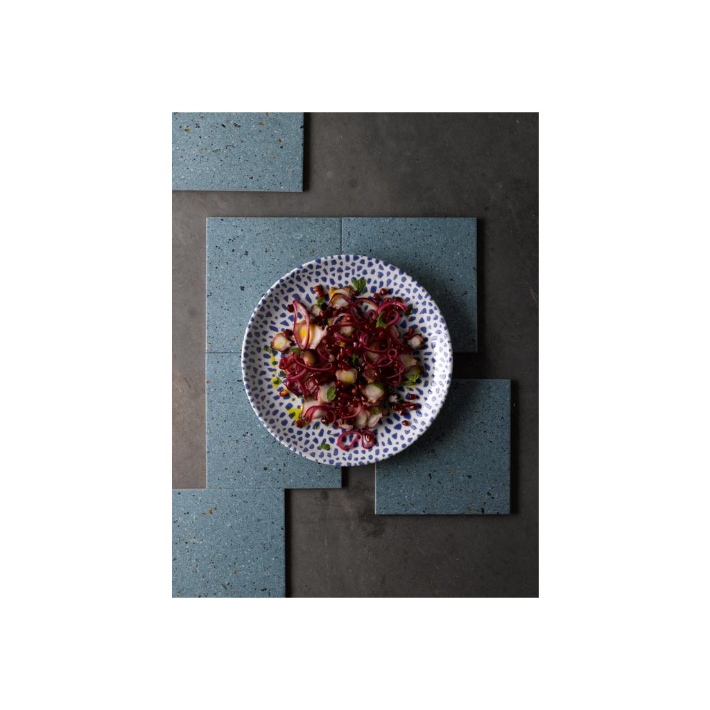 Terrazzo je kolekcia inšpirovaná talianskou dekoratívnou technikou kombinovania úlomkov mramoru a skla, ktoré vytvárajú škvrnitý abstraktný vzor. Motív obľúbený v 70. rokoch minulého storočia je opäť v kurze! Vďaka zaujímavej, neprehliadnuteľnej škále farieb sa Terrazzo skvele hodí na servírovanie degustačných menu aj tradičných regionálnych pokrmov.
