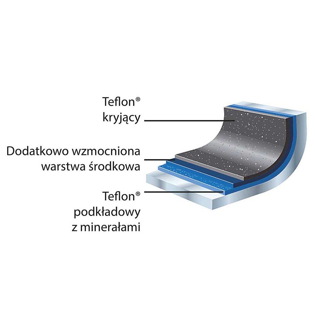Panvica je vyrobená z hliníka s trojvrstvovým teflónovým povrchom Platinum zabraňujúcim odreniu. Má epoxidovú oceľovú rukoväť s vysokou tepelnou odolnosťou namontovanú na epoxidovaných nitoch. Na panvici sa dá smažiť aj s veľmi malým množstvom oleja. Nepoužívať na indukčných sporákoch, nemožno umývať v umývačke riadu.Dodatočné parametre