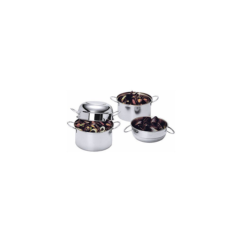 Hniec na mušle vyrobený z leštenej nehrdzavejúcej ocele 18/10 s pokrievkou slúžiacou tiež ako nádoba na prázdne mušle.Dodatočné parametre
