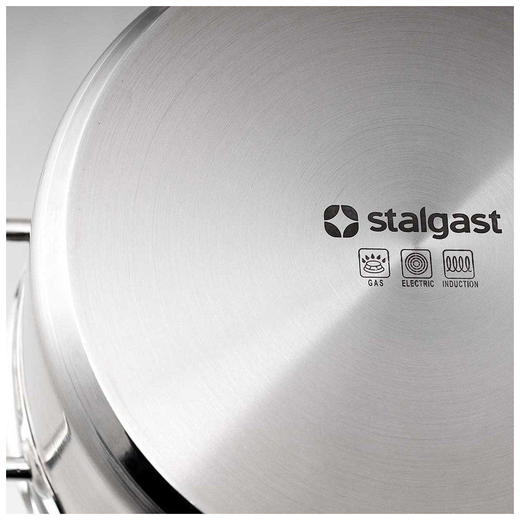 Hrniec z nehrdzavejúcej ocele so saténovým povrchom, výrobca STALGAST. Má nenahrievajúce sa viacbodovo zvárané úchyty, trojité dno, ktoré zaisťuje odolnosť proti korózii, poskytuje dobrú tepelnú vodivosť. Vhodný pre všetky typy sporákov vrátane indukčných. Možno umývať v umývačke riadu. S pokrievkou.Dodatočné parametre