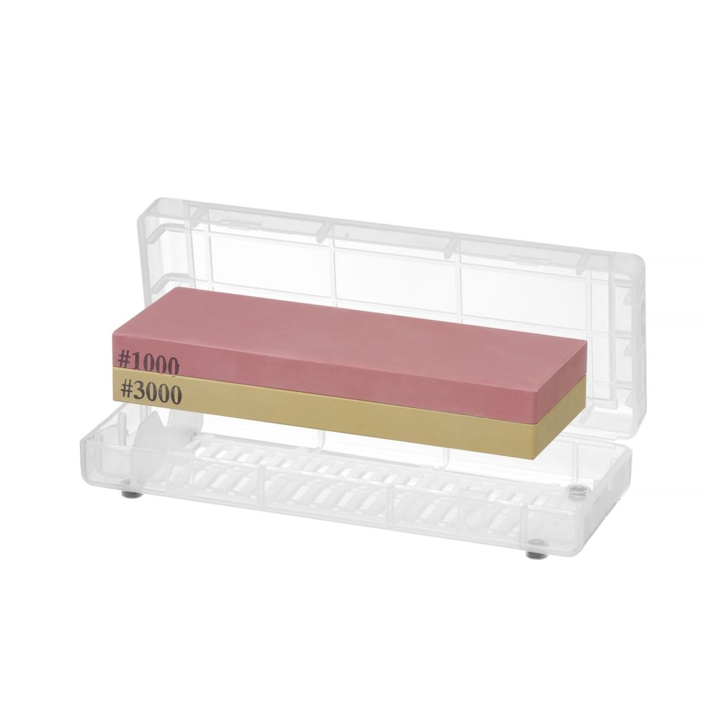 Obojstranný kameň sa skladá z 2 dosiek s 2 rôznymi zrnitosťami: 220/1000 (820667). 1000/3000 (820674). Kamenná drvina - so svojím účelom: 220: brúsenie a regenerácia ostria. 1000: základné brúsenie ostria. 3000: leštenie a dokončovanie ostria. Pred použitím kameň navlhčite vodou. Súčasťou sady je plastová nádoba pre bezpečné skladovanie.Buďte prvý, kto napíše príspevok k tejto položke.