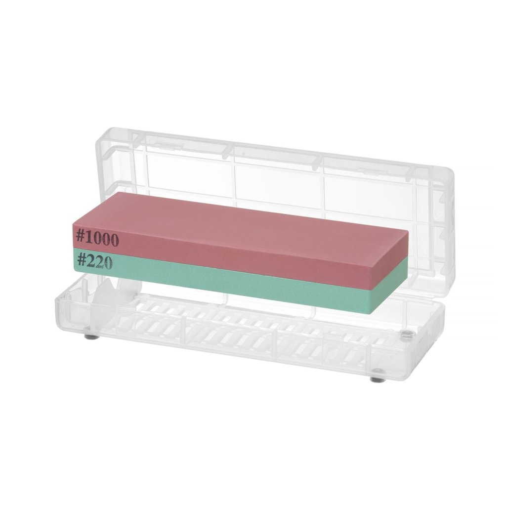 Obojstranný kameň sa skladá z 2 dosiek s 2 rôznymi zrnitosťami: 220/1000 (820667). 1000/3000 (820674). Kamenná drvina - so svojím účelom: 220: brúsenie a regenerácia ostria. 1000: základné brúsenie ostria. 3000: leštenie a dokončovanie ostria. Pred použitím kameň navlhčite vodou. Súčasťou sady je plastová nádoba pre bezpečné skladovanie.Buďte prvý, kto napíše príspevok k tejto položke.