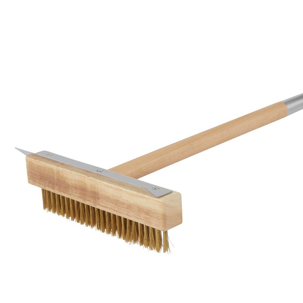 Kefa na čistenie pecí na pizzu s vlasom z mosadze a dreveným úchytom.