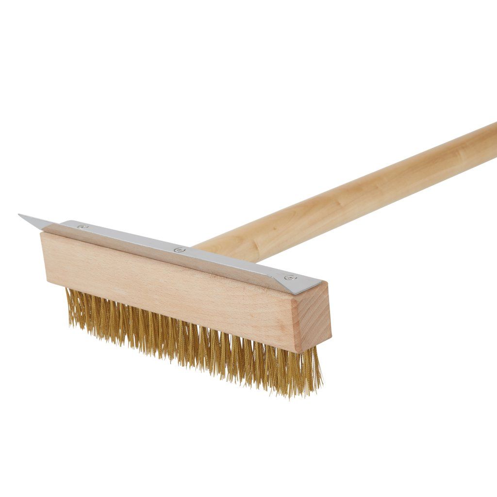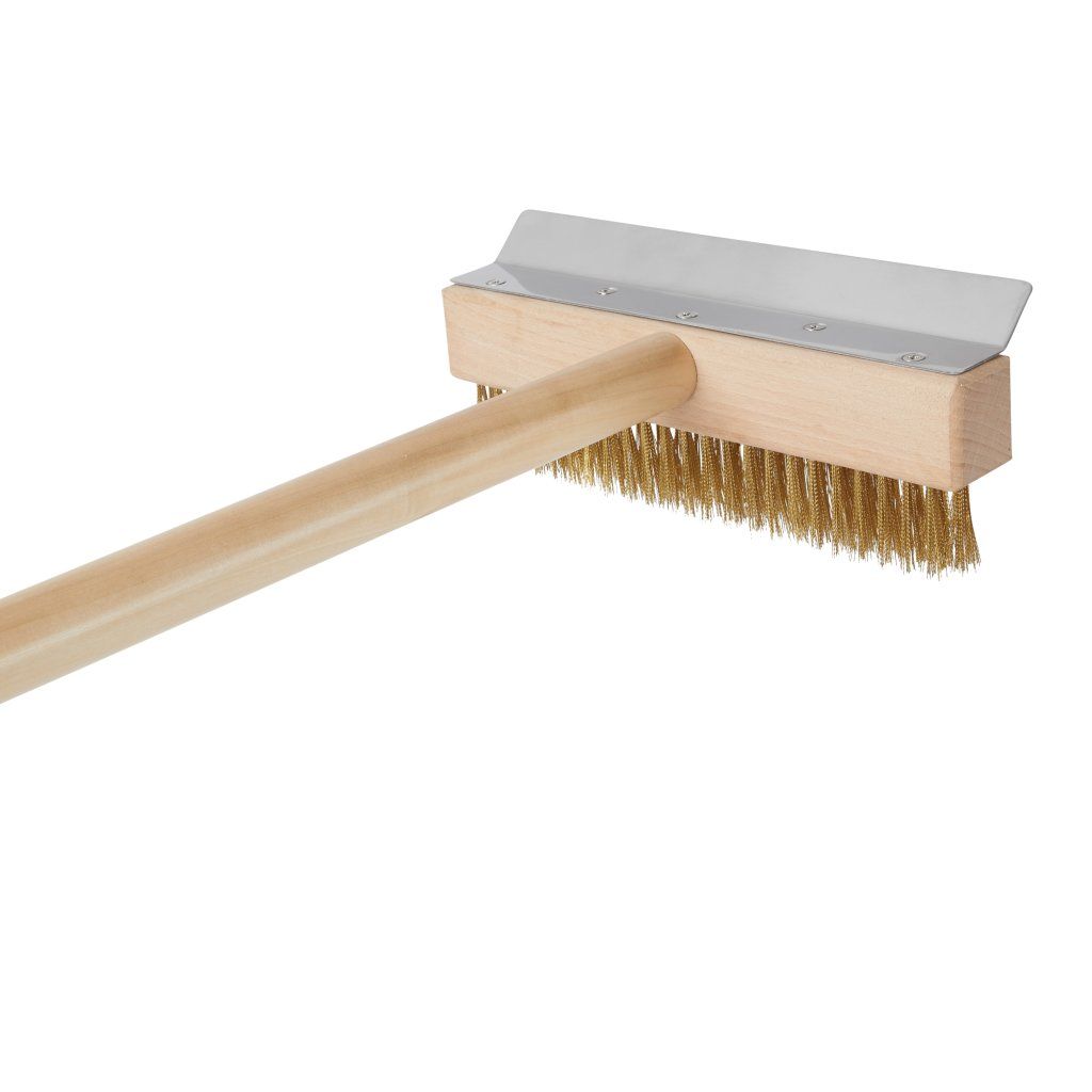 Kefa na čistenie pecí na pizzu s vlasom z mosadze a dreveným úchytom.