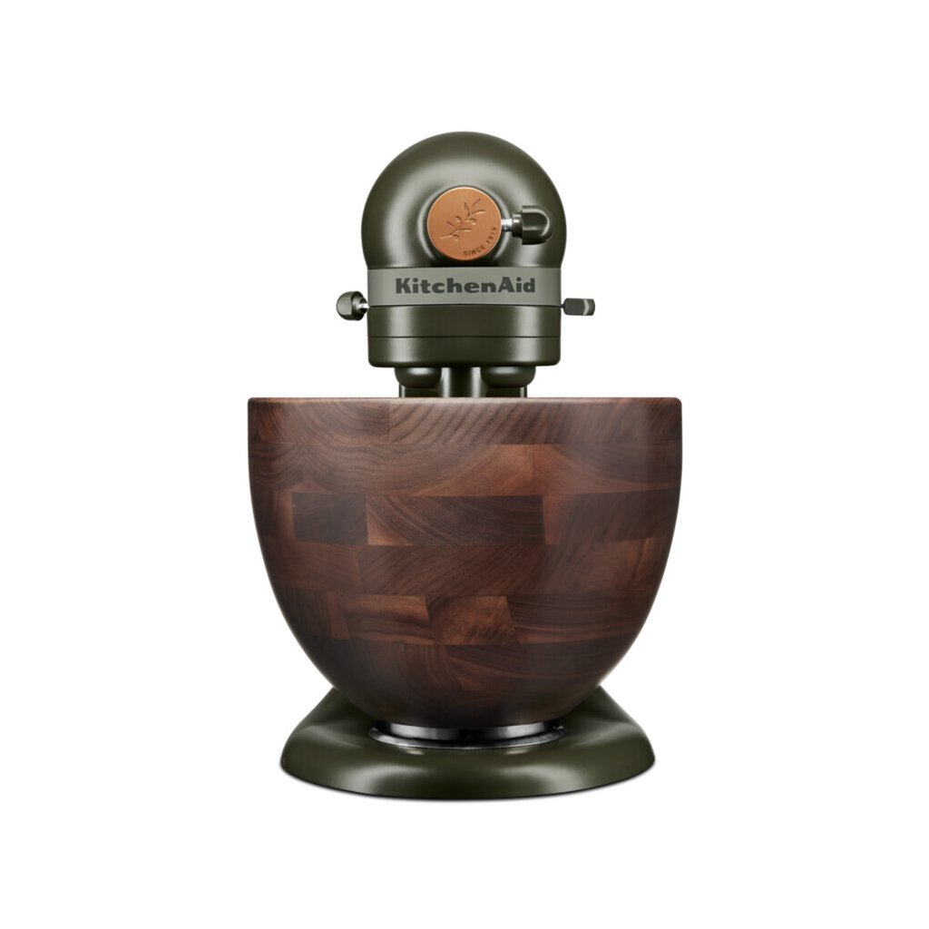 - Dizajnový kuchynský robot Evergreen v sýto zelenej farbe a misa z pravého orechového dreva prinášajú prírodu do každej kuchyne. Jedinečný dekoratívny ozdobný matný prúžok s jemným vzorom listov krásne plynie s kuchynským robotom inšpirovaným prírodou. Upínacia hlavica je doplnená dizajnovou vrúbkovanou mosadznou krytkou náboja s vyrazeným reliéfom listu.