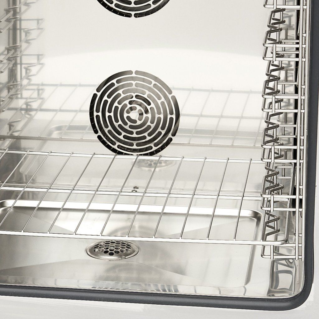 S týmto digitálnym modelom kombinovanej parnej rúry môžete variť mäso, ryby alebo zeleninu v pare a zachovať si vitamíny, chuť a farbu dlhšie ako pri iných spôsoboch prípravy. Varenie v pare tiež zabraňuje vysychaniu potravín a na tanieroch vašich hostí vyzerajú skvele. Kombinácia horúceho vzduchu a pary robí z tejto kombinovanej parnej rúry univerzálny kuchynský spotrebič, ktorý vám umožní nahradiť mnoho kuchynského náčinia. Táto kombinovaná parná rúra je ideálna na použitie s plechmi 1/1 GN alebo plechmi na pečivo s rozmermi 60 x 40 cm. K dispozícii je kapacita až pre desať plechov naraz.