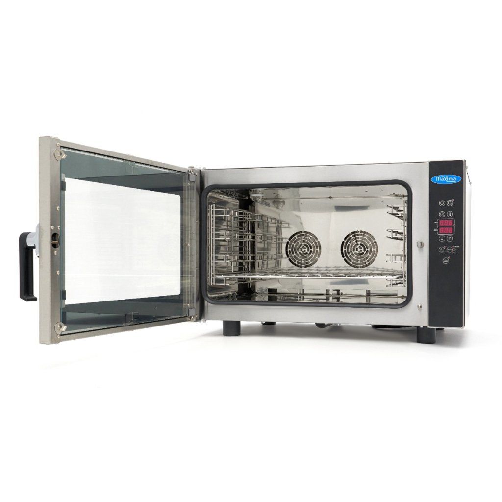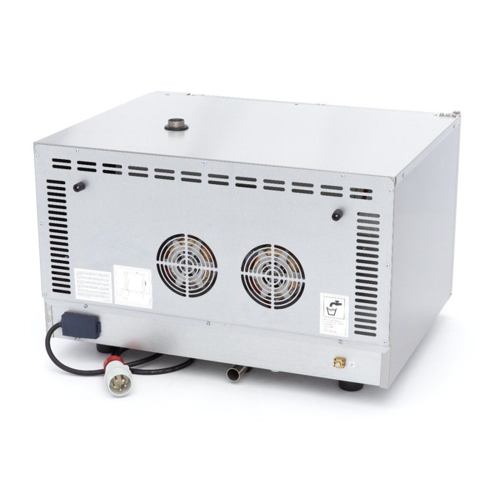 Táto kombinovaná parná rúra má výkonné vykurovacie telesá z nehrdzavejúcej ocele, ktoré zaisťujú úplnú a účinnú distribúciu tepla, takže mäso a ryby sa pripravujú rovnomerne. Okrem toho je kombinovaná parná rúra vybavená dvoma ventilátormi s reverznou funkciou a dvojitým atermickým zasklením. Dvierka sa veľmi ľahko nastavujú a tesnenie dvierok je vyrobené z potravinárskeho silikónu. Vnútorné osvetlenie uľahčuje prehľad o tom, ako ďaleko ste v procese varenia. Tento spotrebič je vybavený prívodom vody s ventilom na výrobu pary a tiež vývodom vody. Ide o úplne prispôsobiteľné zariadenie s jednoduchým digitálnym displejom a dotykovými tlačidlami. K dispozícii je niekoľko prednastavených programov s tromi nastaviteľnými fázami, vrátane úrovne pary, teploty a času. Prednastavené programy môžete nastaviť pomocou tlačidla fázy. Prednastavený program je tiež možné nastaviť a uložiť do pamäte kombinovanej parnej rúry.