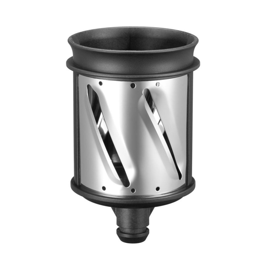 Prítlačný nástavec 2 v 1. Dokonale krája a strúha ovocie a zeleninu ak veľkého, tak malého priemeru – od uhoriek po mrkvu.