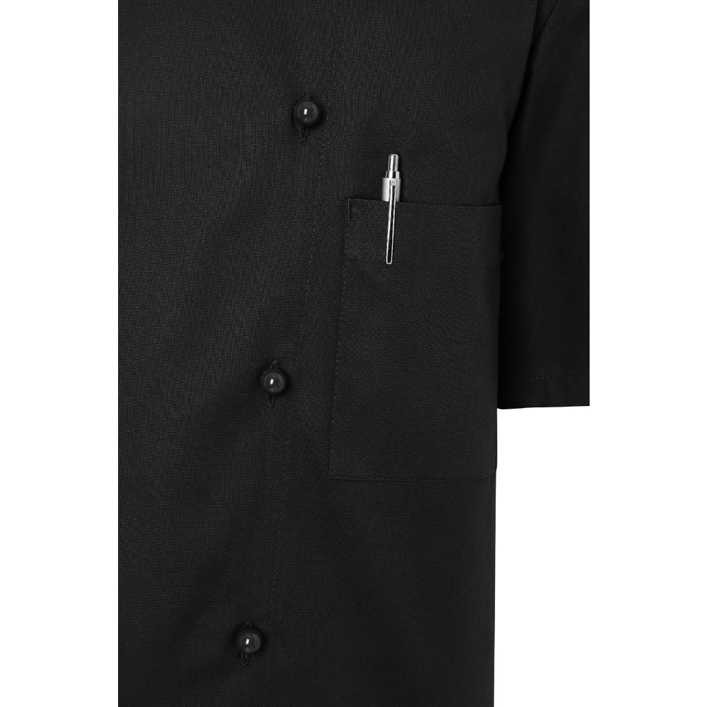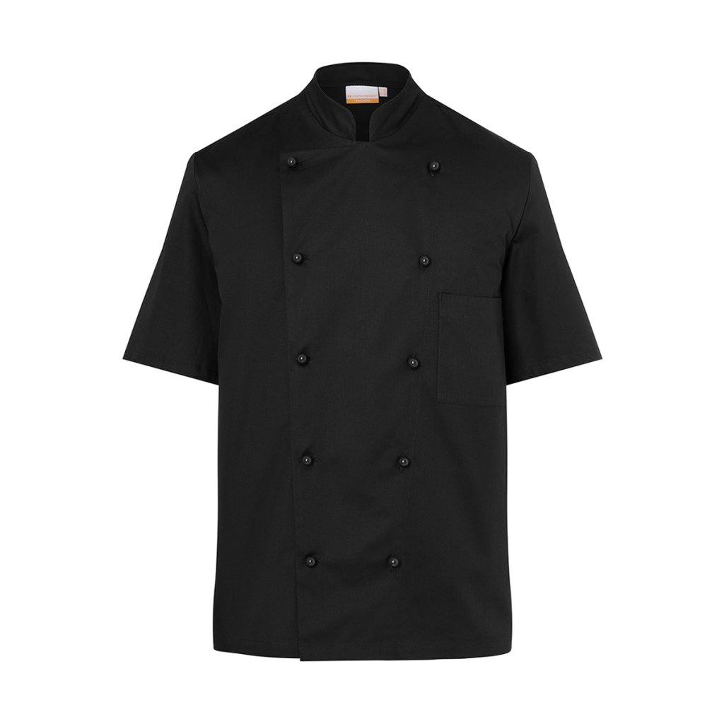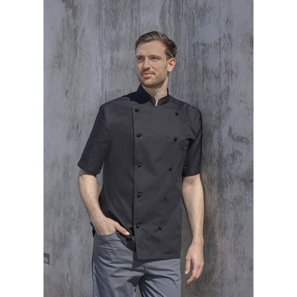 | keprová väzba, 100 % bavlna, 210 g/m² | vysoko rafinovaná, vyzrážaná, stálofarebná | klasická kuchárska bunda s krátkymi rukávmi | klasická kuchárska bunda s krátkymi rukávmi | bez bočných švov | bočné švy vzadu | našité náprsné vrecko na ľavej strane (min. 10 x 14 cm) | dvojradová bunda s 10 gombíkmi (bez gombíkov a gombíkovej légy; tieto je nutné objednať samostatne) | vhodná pre priemyselné pranie pre jednoduchú údržbu a dlhú životnosť | zodpovedajúca gombíková léga: KL 4 (číslo výrobcu) | zodpovedajúci výrobok: Dámska kuchárska bunda Pauline - JF 2 (číslo výrobku výrobcu)Dodatočné parametre