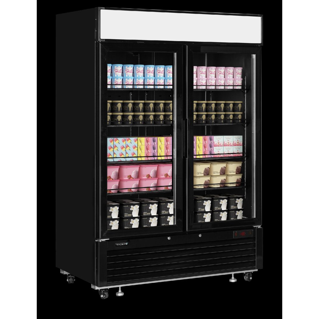 Elegantná čierna mraziaca skriňa s reklamným panelom Rad mraziacich skríň s presklenými dverami LGF-B je navrhnutý pre elegantné a efektívne vystavovanie v maloobchodných prevádzkach. Dodáva sa s 1, 2 alebo 3 dverami. Je vybavená nastaviteľnými policami, vyhrievanými presklenými dverami a dvoma LED svetlami na každé dvere pre optimálnu prezentáciu výrobkov. Dodáva sa s LED reklamným panelom a je ideálna pre branding, ktorý pritiahne pozornosť. Vďaka energeticky úspornému chladiacemu systému oceníte nízke prevádzkové náklady a vaše výrobky budú vždy pri ideálnej teplote. K dispozícii aj v chladiacej verzii (LGC).Dodatočné parametre