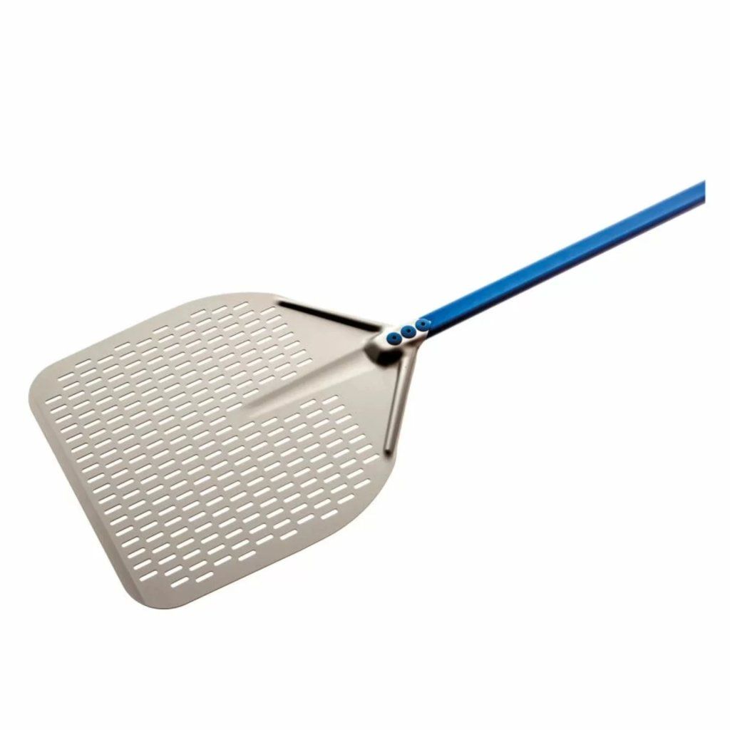 Ľahká, ale zároveň pevná lopata, ktorá sa vďaka oválnej rukoväti pohodlne drží. Nitovaná rukoväť neprenáša vibrácie. Po celom povrchu lopaty nájdete otvory, ktoré sú špeciálne navrhnuté tak, aby zaistili nízke trenie a umožnili odsypávanie prebytočnej múky, ktorá by sa inak mohla prilepiť pizzu ku dnu a spôsobiť jej pripálenie.Lopata na pizzu hliníková perforovaná 45 × 45 cm