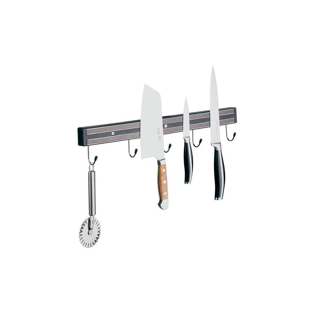 Plastová lišta na stenu s dvomi magnetickými pásmi na umiestnenie nožov. Navyše háčiky na zavesenie iných kuchynských pomôcok.Dodatočné parametre
