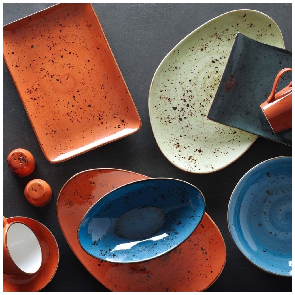 Bohatá kolekcia ručne dekorovaného porcelánu v piatich sviežich farbách. Zlaďte krémové, oranžové, modré, sivé a olivové kúsky, aby ste získali jedinečný a prekvapivý vzhľad stola, a jedlo bude vyzerať rovnako dobre ako chutiť. Odolný a trvanlivý riad navrhnutý tak, aby vydržal náročné používanie v profesionálnej kuchyni.Buďte prvý, kto napíše príspevok k tejto položke.