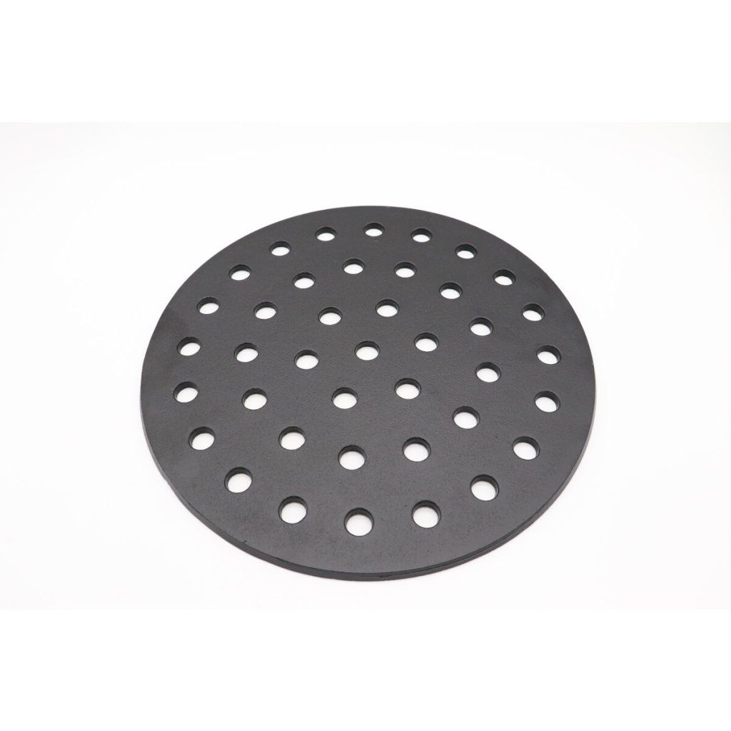 Liatinový rošt na drevené uhlie sa nachádza na dne keramického ohniska Kamado. Uhlie leží na mriežke na drevené uhlie. Otvory v mriežke zaisťujú dobrú cirkuláciu vzduchu.