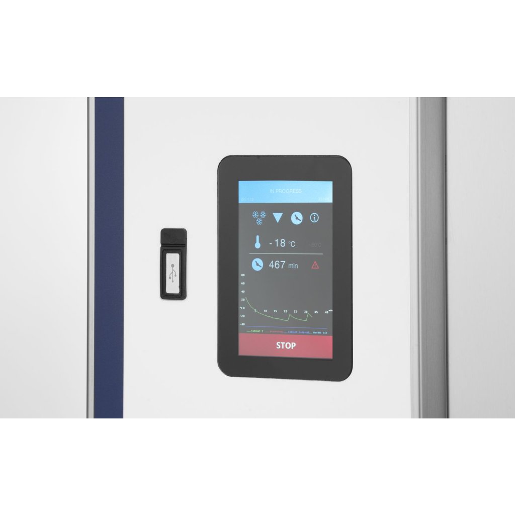 Multifunkčné zariadenie kombinujúce úžitkové funkcie niekoľkých zariadení: - rýchlomraznička so sondou alebo bez sondy rýchlomraznička so sondou alebo bez sondy rýchlomraznička pre tradičnú zmrzlinu - rozmrazovacie zariadenia - pomalý hrniec VLASTNOSTI: - Režim rýchleho chladenia - so sondou alebo bez nej, v teplotnom rozsahu od +90 °C do +3 °C - Režim rýchleho zmrazenia - so sondou alebo bez nej, v teplotnom rozsahu od +90 °C do -18 °C - Špeciálny režim zmrazovania surových rýb určených na konzumáciu v surovom stave - Rozmrazovanie výrobkov - Rozmrazovanie vnútorného priestoru - Tuhnutie zmrzliny - Sušenie - Chladenie cesta - Pomalé varenie FUNKCIE ZARIADENIA: - Kniha receptov (spočiatku 10 receptov nahraných výrobcom, možnosť nahrať celkom 99 rôznych receptov) - Možnosť automatickej kontroly pomocou 4-bodovej sondy (možnosť zberu dát na 4 rôznych miestach po celej dĺžke sondy) (voliteľné). - Sonda uložená v robustnom silikónovom plášti - Praktické použitie sondy vďaka jej umiestneniu - Port USB pre jednoduchú výmenu dát medzi nosičom dát a prístrojom - Vysoko kvalitné komponenty pre dlhú životnosť - Vysoko kvalitný chladiaci systém - Odparovače chránené proti korózii špeciálnym antikoróznym náterom - Profesionálne ventilátory regulujúce teplotu v komore - Systém regulácie otáčok ventilátora - Samozatváracie dvierka so zámkom a silikónovým tesnením odolným proti chladu - Vyhrievaný rám dverí, ktorý zabraňuje zamrznutiu počas mraziaceho cyklu. - Zaoblené rohy priehradky pre lepšie čistenie - Špeciálny reliéf na dne priestoru pre uľahčenie rýchleho odtoku kondenzátu z priestoru. - Vonkajší odvod kondenzátu pod jednotkou, priamo nad odtokovou mriežkou. - Plášť z nehrdzavejúcej ocele AISI 304 18/8 - Chladivo R404A - Vnútro komory z leštenej nehrdzavejúcej ocele Kapacita chladiaceho cyklu – 40 kg Kapacita v mraziacom cykle - 25 kg Kapacita udávaná pri maximálnom zaťažení chladiaceho priestoru ZOBRAZIŤ: Obsluha celého zariadenia z jedného panela 5'palcový plne dotykový displej Veľké a prehľadné ikony ponukyBuďte prvý, kto napíše príspevok k tejto položke.