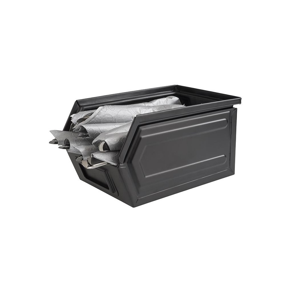 Box na desiatu "INDUSTRIAL", kovový, čierny, stohovateľný, s okienkom na etiketuDodatočné parametre