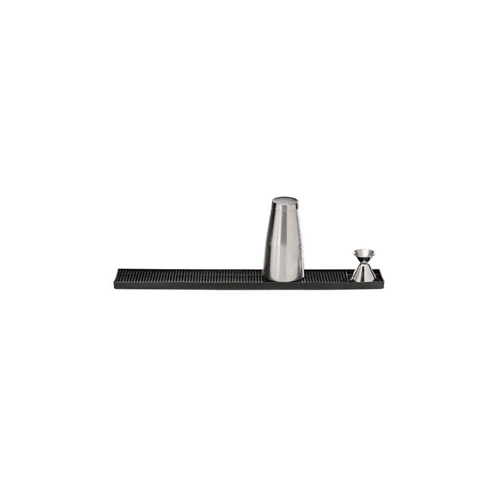 Odkvapkávacia rohož z čierneho plastu. Ideálna na sušenie a skladovanie skleneného riadu. S ďalším priestorom na sušenie barových odmerných pohárov. Možno umývať v umývačke riadu a stohovať.