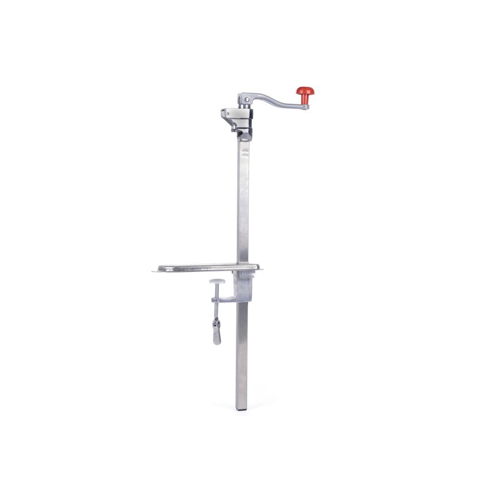 Stolný otvárač na konzervy, ktorý je možné pripevniť k stolu pomocou svorky alebo skrutiek. Vrátane noža a kolieska.Otvára plechovky s výškou 20 až 550 mm.Dodatočné parametre