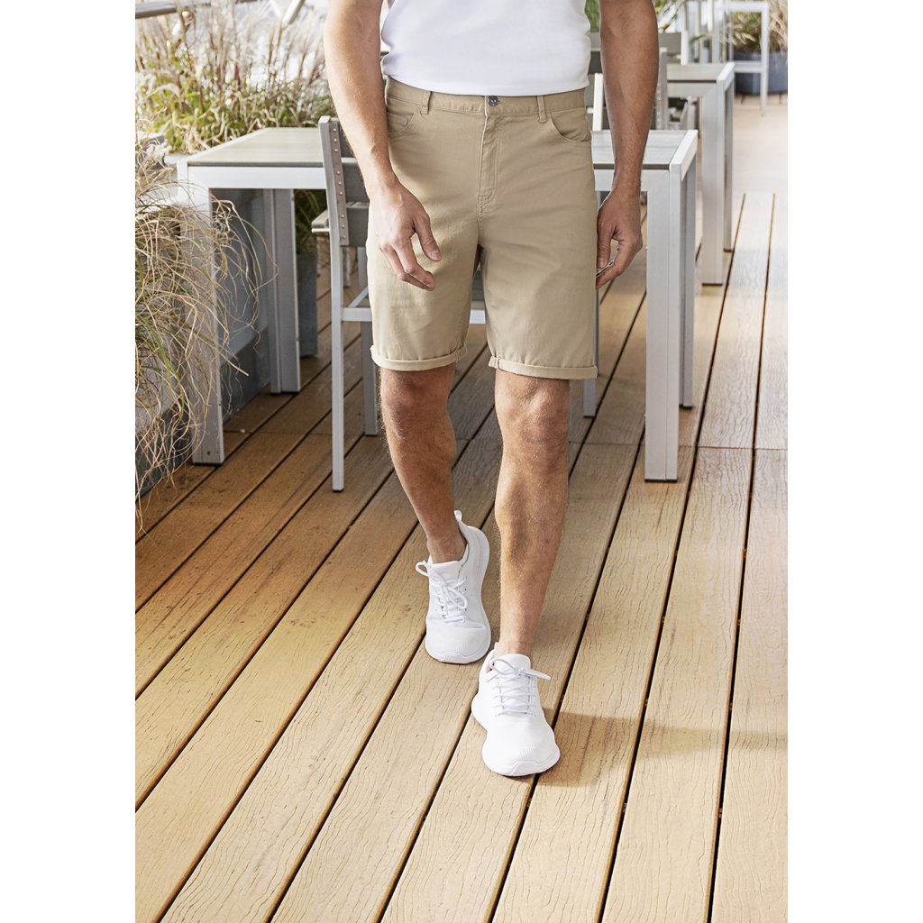 | keprová tkanina, 98 % bavlna / 2 % elastan, 230 g/m² | jednoduchá údržba, elastické | | ležérne pánske kraťasy v klasickom štýle s 5 vreckami | vyrobené z ľahkej a priedušnej strečovej bavlny pre skvelú voľnosť pohybu | univerzálne na teplé dni, napr. v plážových baroch, na výletných lodiach, v golfových kluboch, kaviarňach a na mnohých ďalších miestach | vyvinuté pre vysoké nároky na údržbu (biele: možno prať na 95 °C / farebné: možno prať na 60 °C) | perfektný spoločník na každý deň, aj mimo práce | priliehavý strih s úzkym lemom | 2 predné vrecká, z toho 1 skryté vrecko na mince | 2 zadné vrecká vzadu | vrátane pútka na opasok | zodpovedajúci výrobok: Dámske kraťasy s 5 vreckami – HF 11 (číslo výrobku výrobcu)Dodatočné parametre