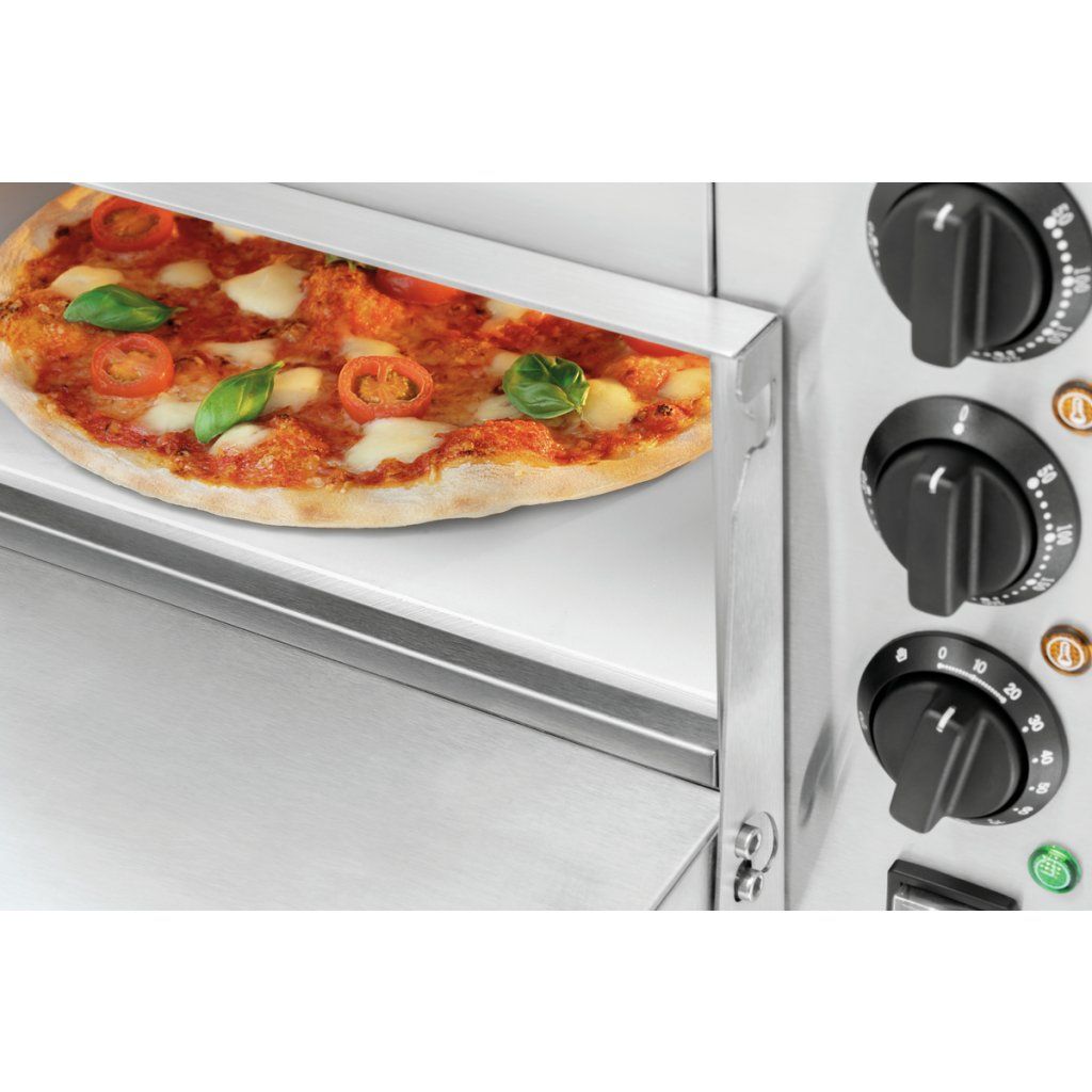 Ať už je pizza čerstvá, nebo již předem tepelně upravená – díky žáruvzdornému kameni, samostatně zapínatelným hornímu a spodnímu topnému tělesu a časovači bude každá pizza vynikající. Díky kompaktní konstrukci si pizza pec najde místo kdekoli – ať už v bistru, fast foodu, snack baru nebo v malých gastronomických kuchyních.