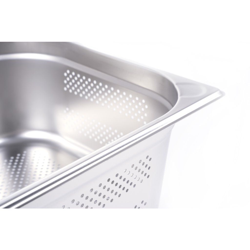 Perforovaná GN nádoba z nehrdzavejúcej ocele so zosilnenými rohmi.- Vhodné na pečenie, varenie v pare.- Nádoba je vhodná na umývanie v umývačke a je stohovateľná.- Veľkosť GN je uvedená v rohu.Dodatočné parametre